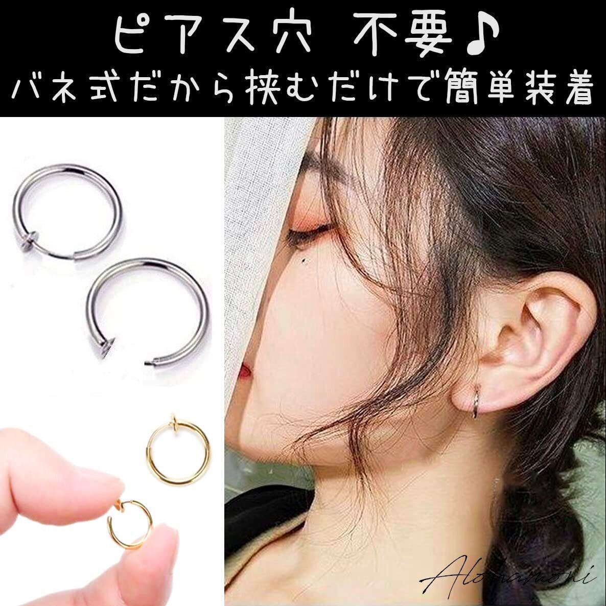 【デザイン】リングピアスつけてみたいけど、ピアス穴が開いていない…という方! ピアスが開いていなくても挟むだけではめられるお手軽なフェイクピアスです