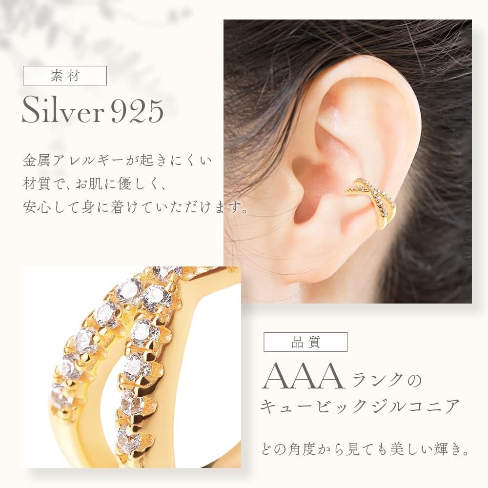 【新着商品】イヤーカフ イヤカフ イヤリング シルバー925 金属アレルギー対応 キュービックジルコニア クロスデザイン レディース