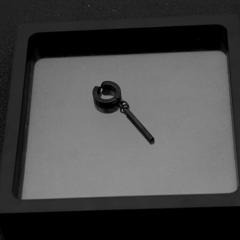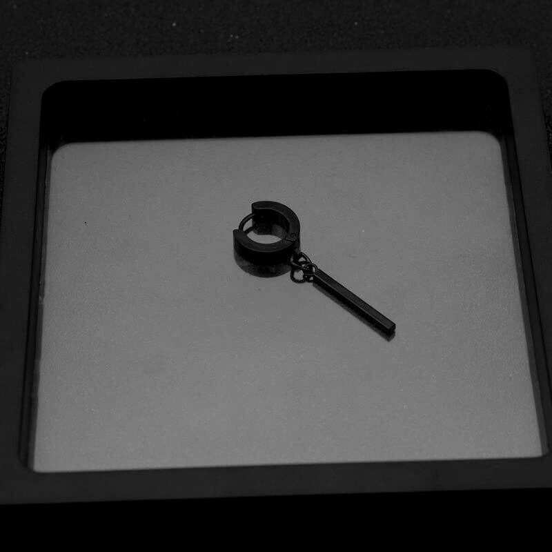 AREUM ピアス/イヤーカフ ブラック 黒 シルバー 幅広 リング スティック BTSスタイル ジミン バンタン 垂れ下がり 両耳用2つ入り フープ 韓国アクセサリー