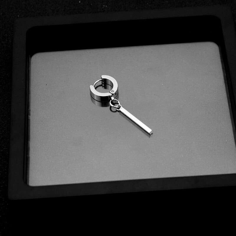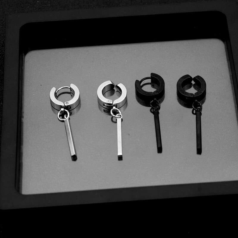 【人気商品】AREUM ピアス/イヤーカフ ブラック 黒 シルバー 幅広 リング スティック BTSスタイル ジミン バンタン 垂れ下がり 両耳用2つ入り フープ 韓国アクセサリー