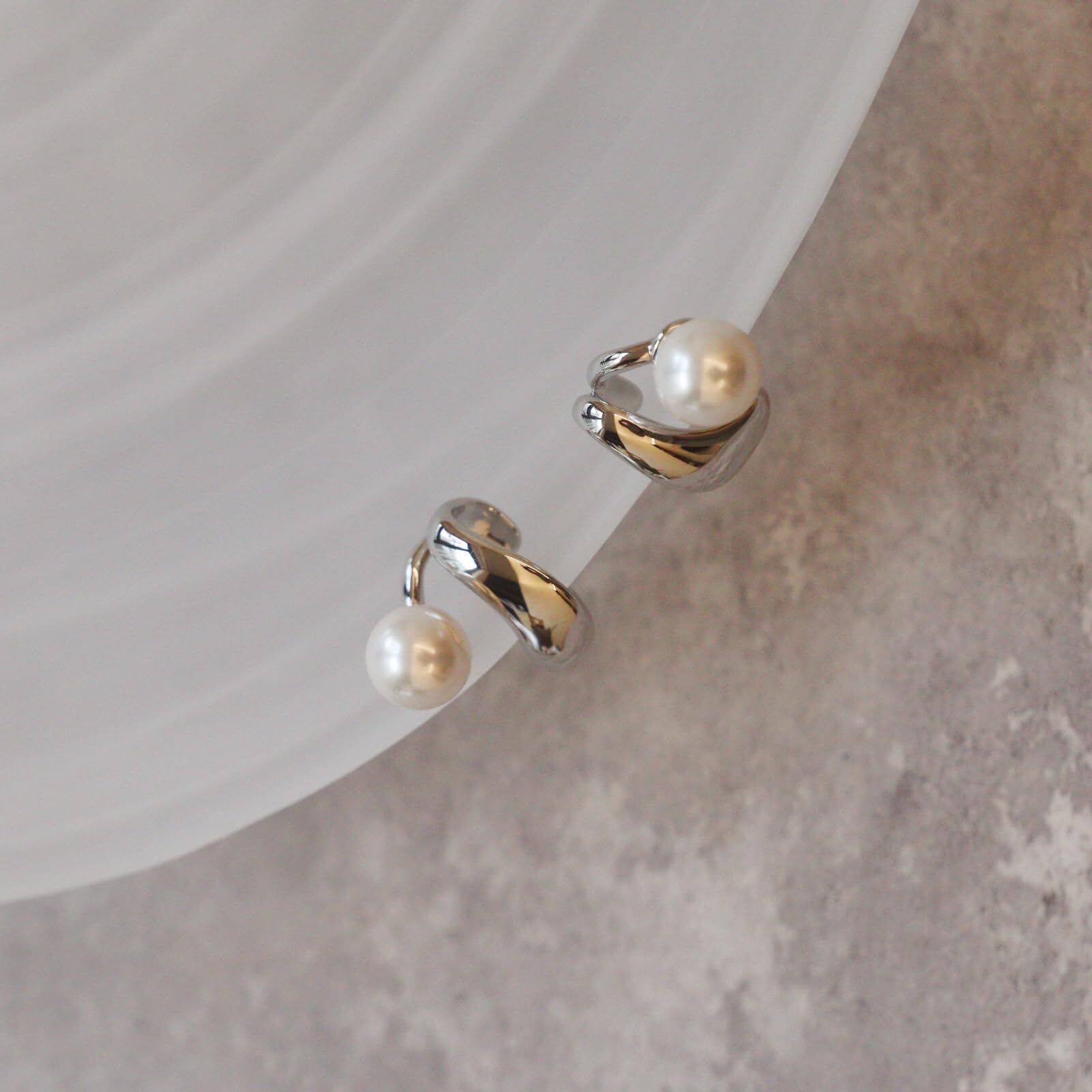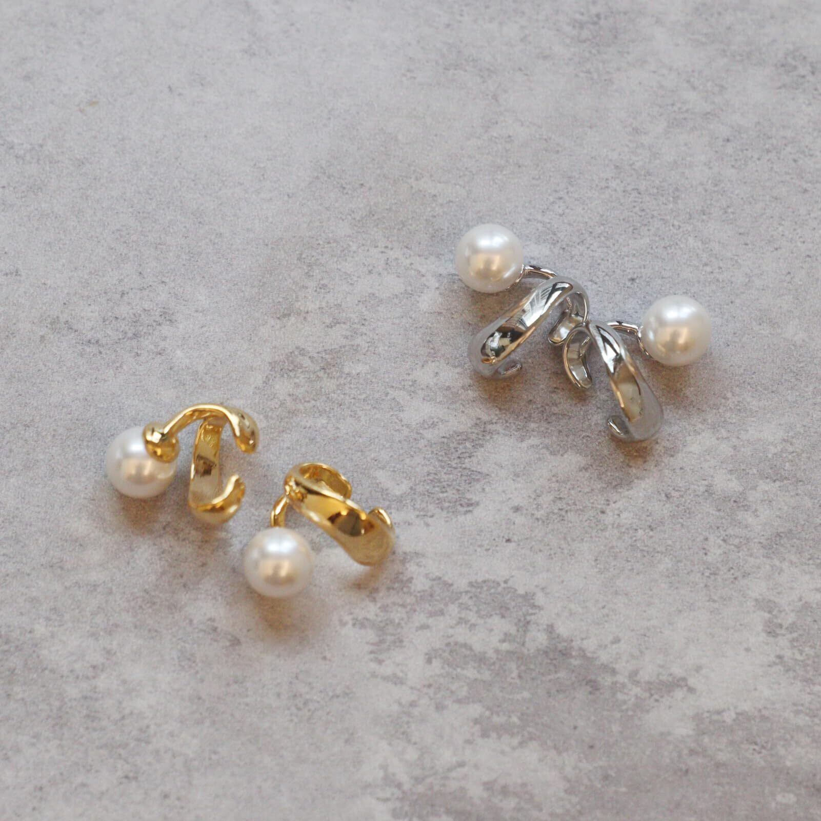 Moonstan イヤーカフ レディース パール ゴールド シルバー 2点セット 金属アレルギー対応 イヤークリップ シンプル 上品 大人 女性用
