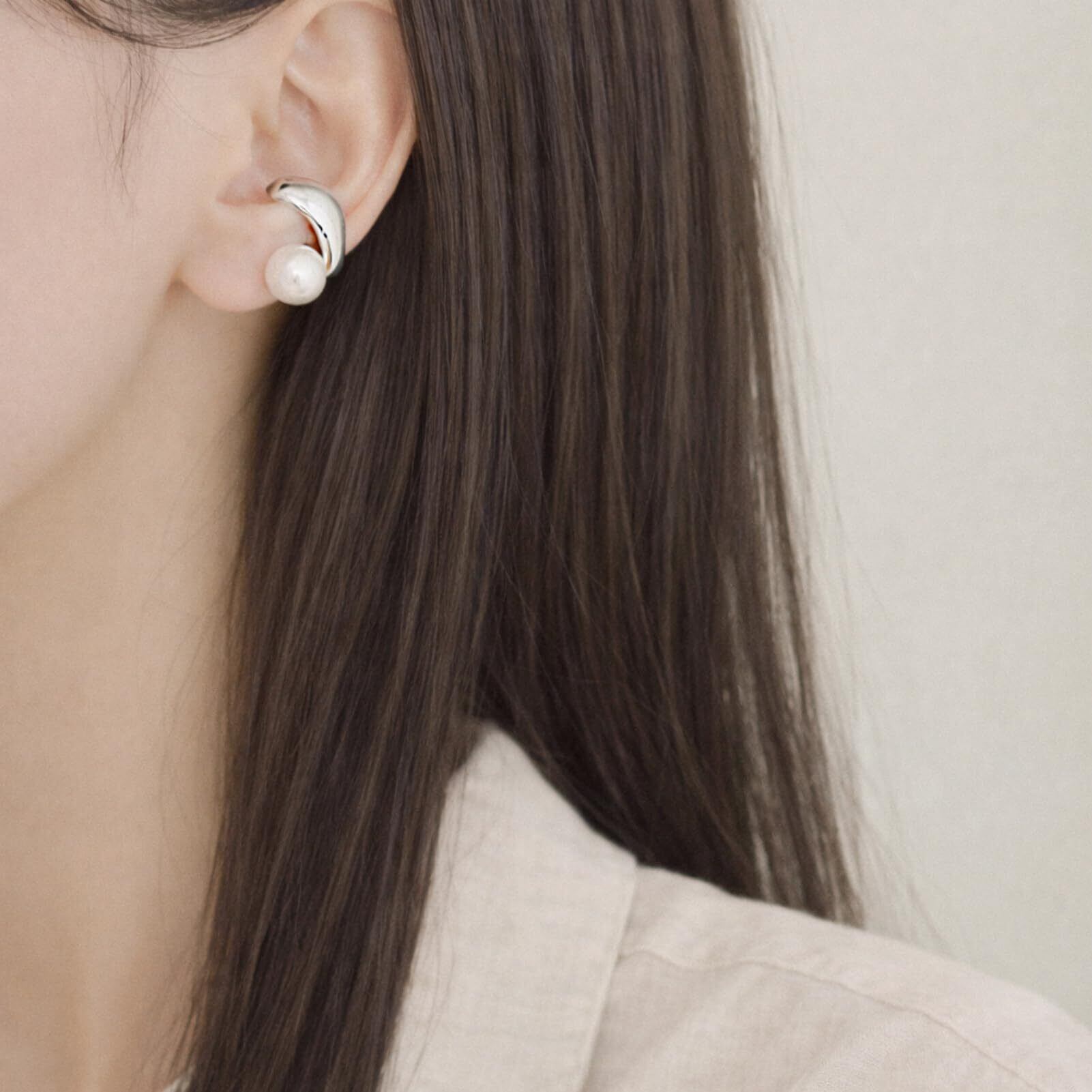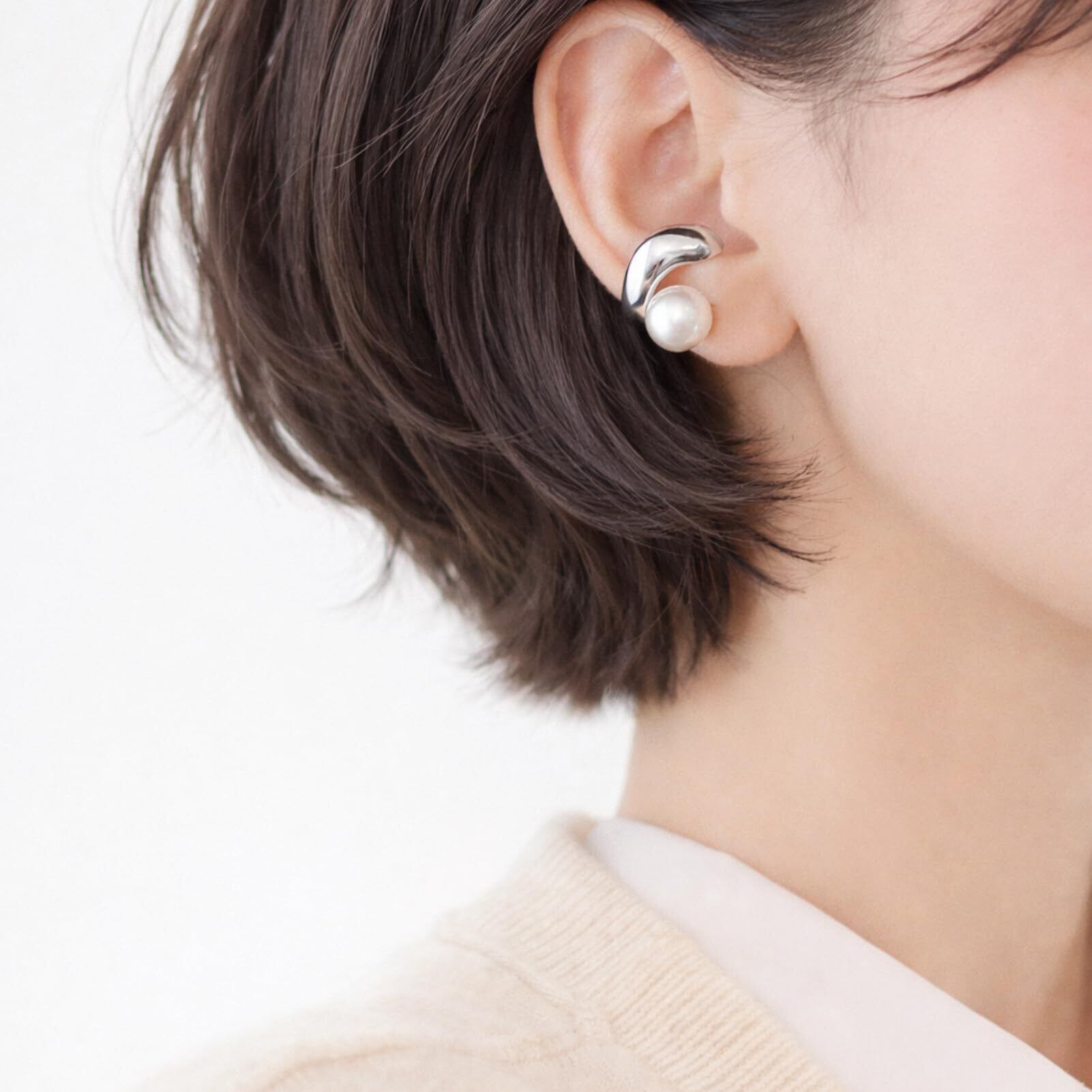 ピアスホール不要のイヤーカフタイプ。耳に挟むだけで簡単に着用でき、ピアスが苦手な方にもおすすめです