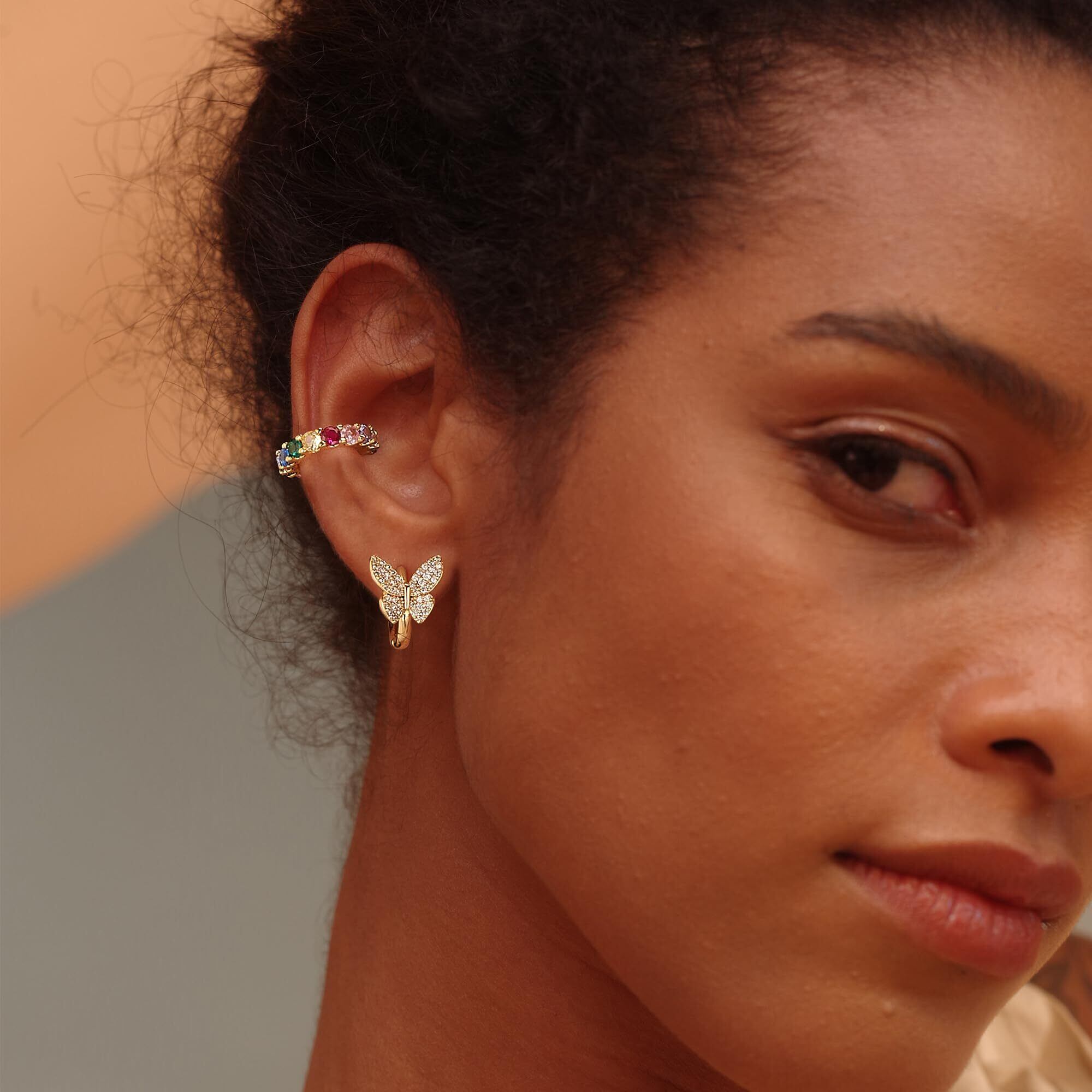 【安心素材】イヤリングに14kゴールドコーティングを採用することで、金属アレルギーの方も肌に優しい、安心のおしゃれを楽しめます。高級品質のキュービックジルコニアを使用、女性に輝く美しさを極める。