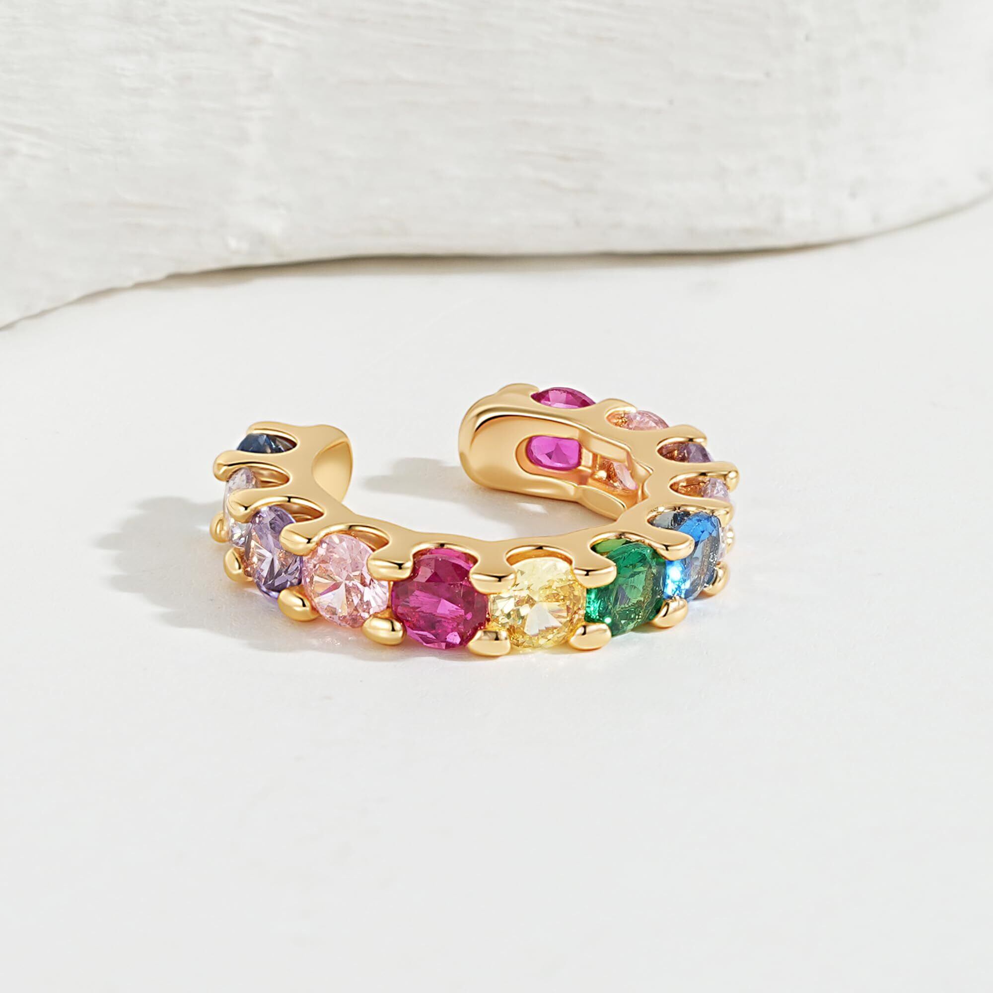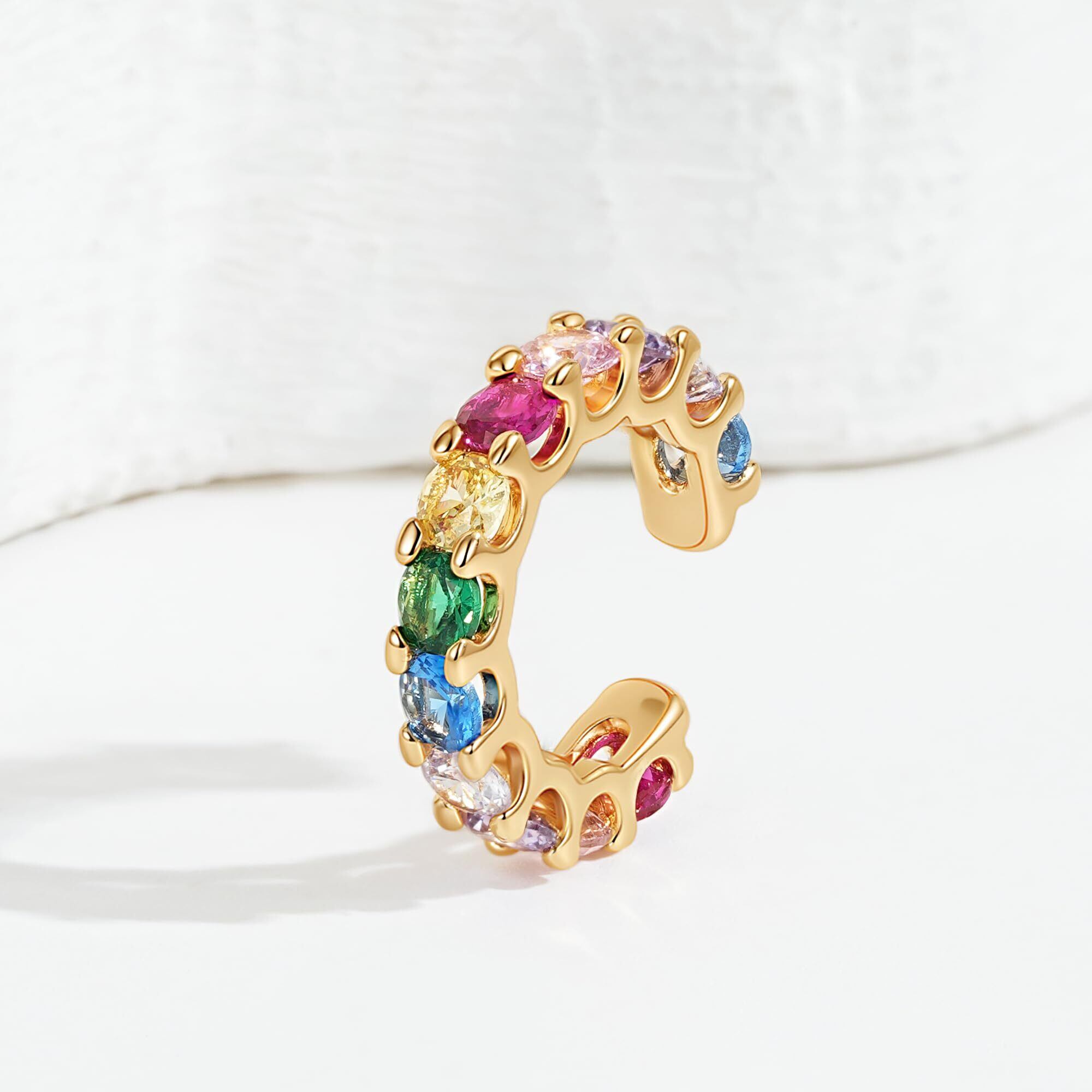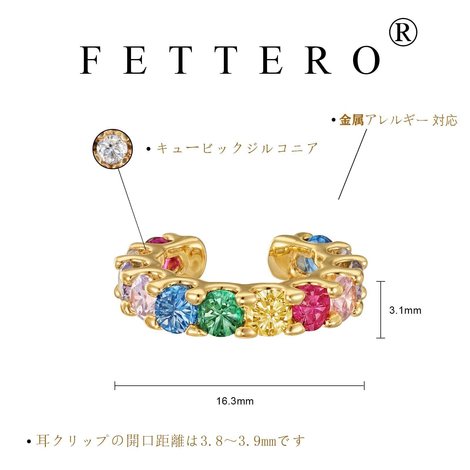 Fettero イヤーカフ 14Kメッキ ダブルライン カラフル レディース 片耳用 ノンホール ピアス
