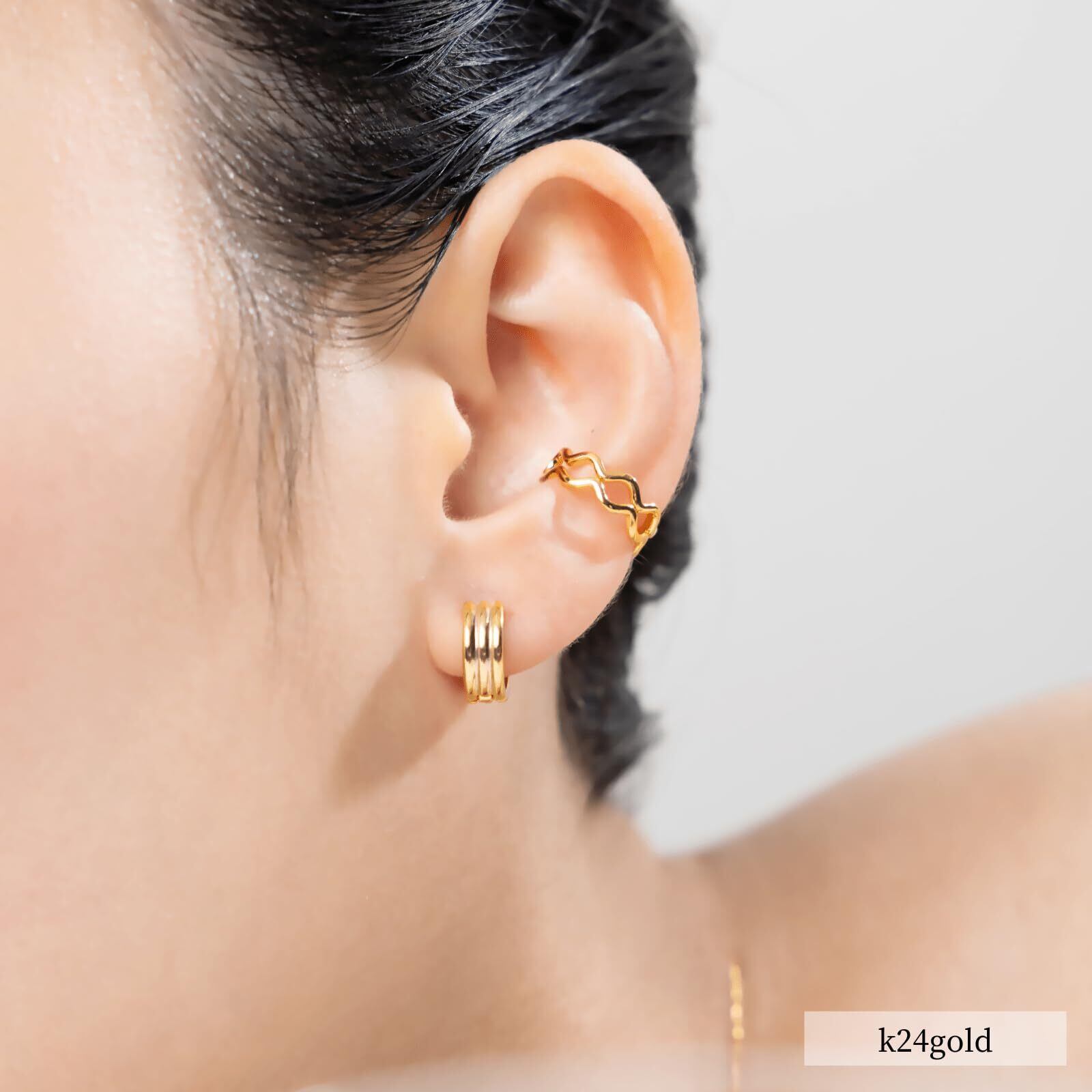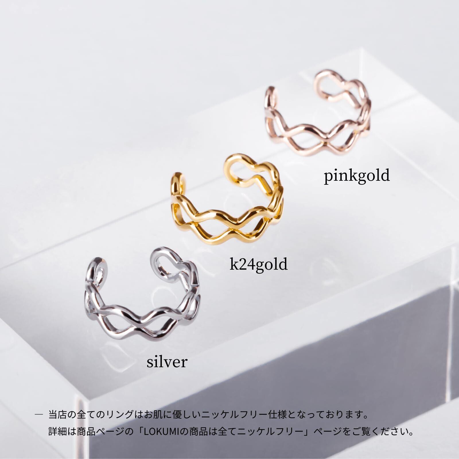 LOKUMI イヤーカフ 日本製 金属アレルギー対応 3カラー シルバー ゴールド ピンクゴールド レディース 金メッキ メンズ シンプル ウェーブ クロス 人気 ギフト プレゼント lmec-12