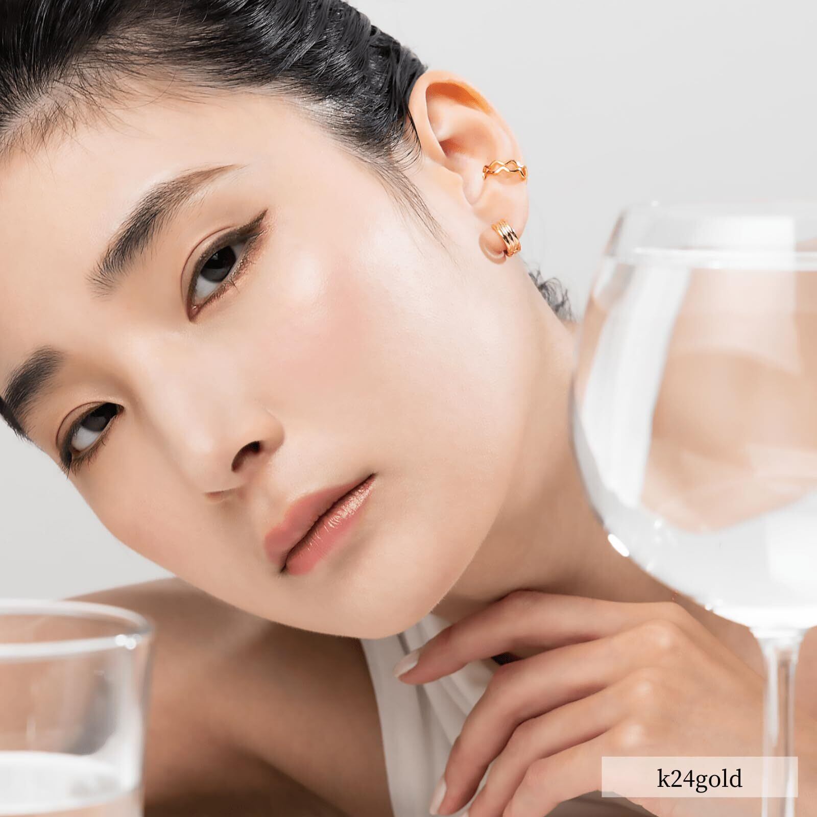 【特価商品】LOKUMI イヤーカフ 日本製 金属アレルギー対応 3カラー シルバー ゴールド ピンクゴールド レディース 金メッキ メンズ シンプル ウェーブ クロス 人気 ギフト プレゼント lmec-12