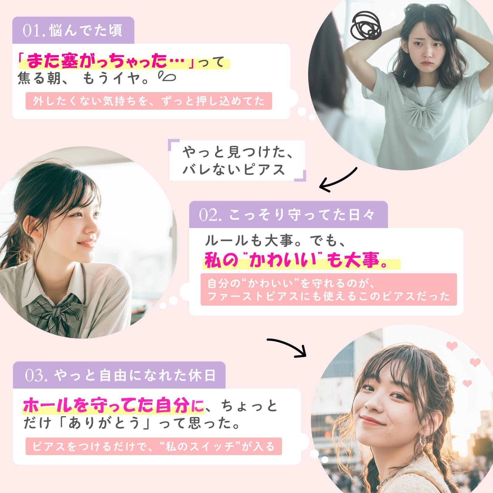 樹脂より強くて安心、アレルギーにもやさしい 鉛フリーの安全素材を使用。金属アレルギー・樹脂かぶれの方にもおすすめ。 硬度が高く傷がつきにくいため、衛生的で長く使えます。 ファーストピアスにも適した設計で、ピアスホールをやさしく守ります。