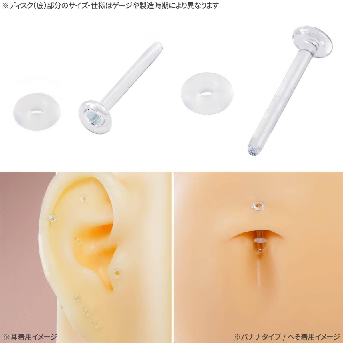 太さ12G,14G,16G,18G,20Gの透明ピアスです