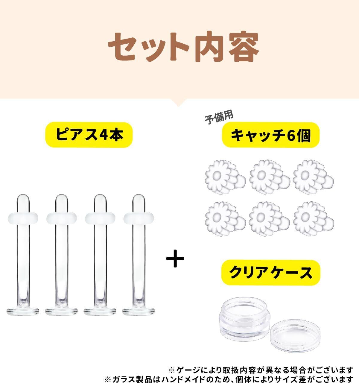 4本セット ガラス リテーナー 透明 クリア 強化ガラス 軟骨ピアス ボディピアス シークレット つけっぱなし 目立たない