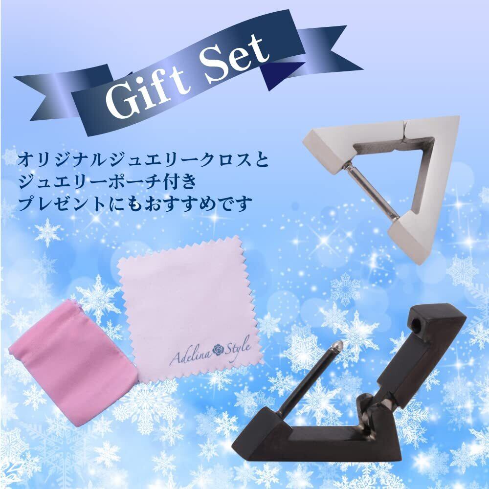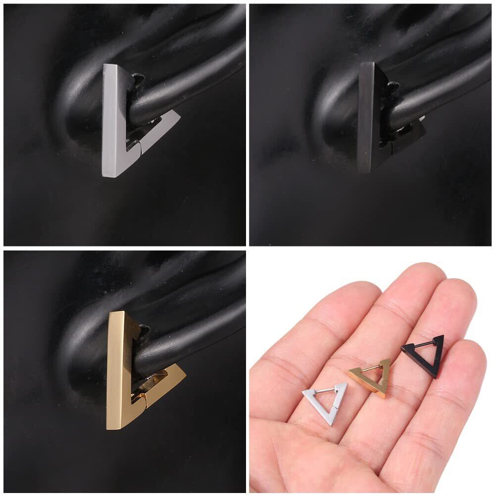 ステンレス フープピアス 三角 [共通仕様 幅3.0mm ポスト長さ6mm] [ポスト径1.0mm/18ゲージ] [ポスト形状:丸形] [三角形重量1.5g] [ハート形重量1.6g] [長方形重量2.0g] [六角形重量1.7g] [ピアスセット内容:ピアス本体・ジュエリークロス、ジュエリーポーチ]