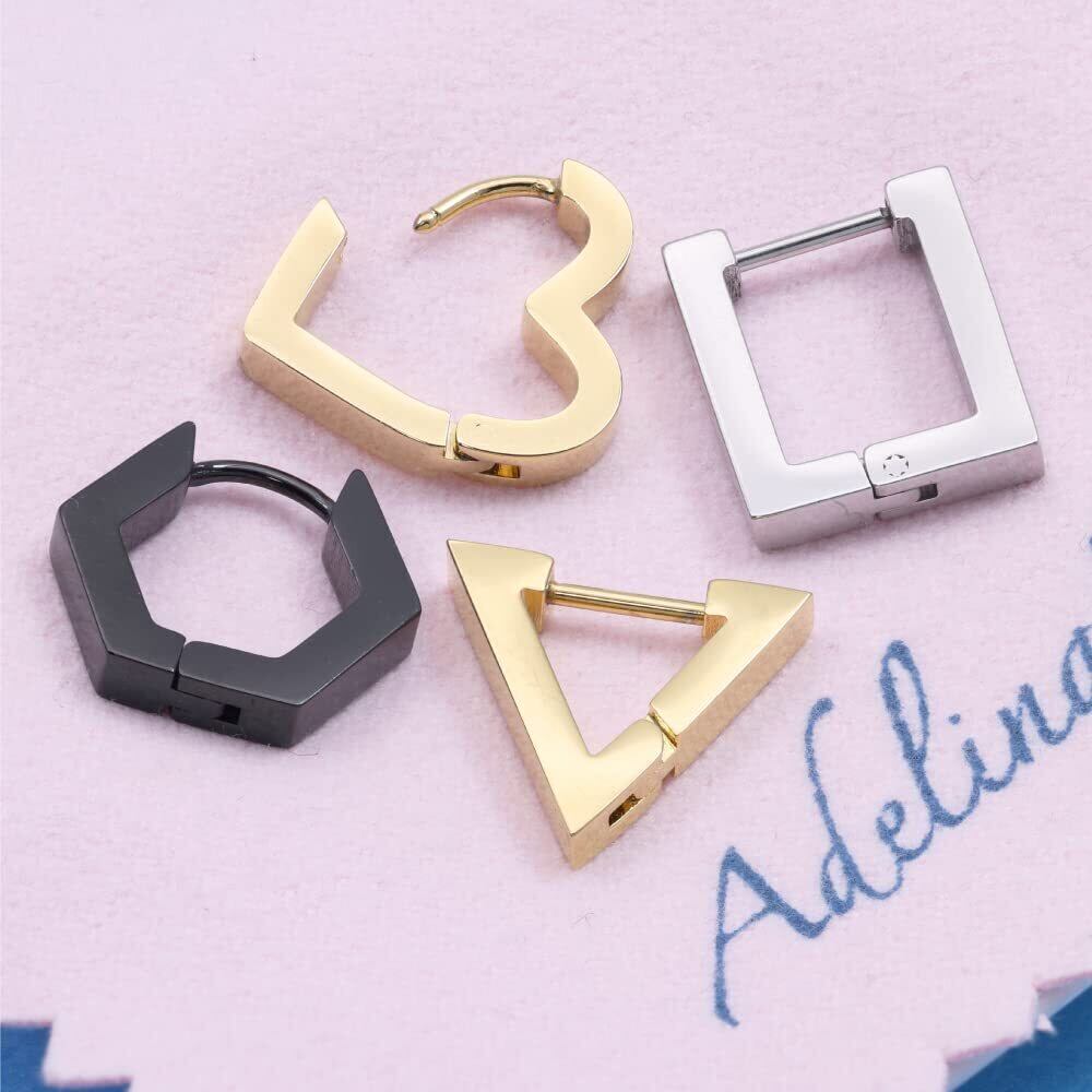 【種類豊富】三角六角ハート長方形など多角形フープピアスお好みのピアスを見つけてください。毎日の気分に合わせて選べる種類豊富なフープピアスです。軽量で付け心地よく長時間の着用でも疲れにくくレディースピアス、メンズピアスとしてデイリーでお使えいただけるピアスです。