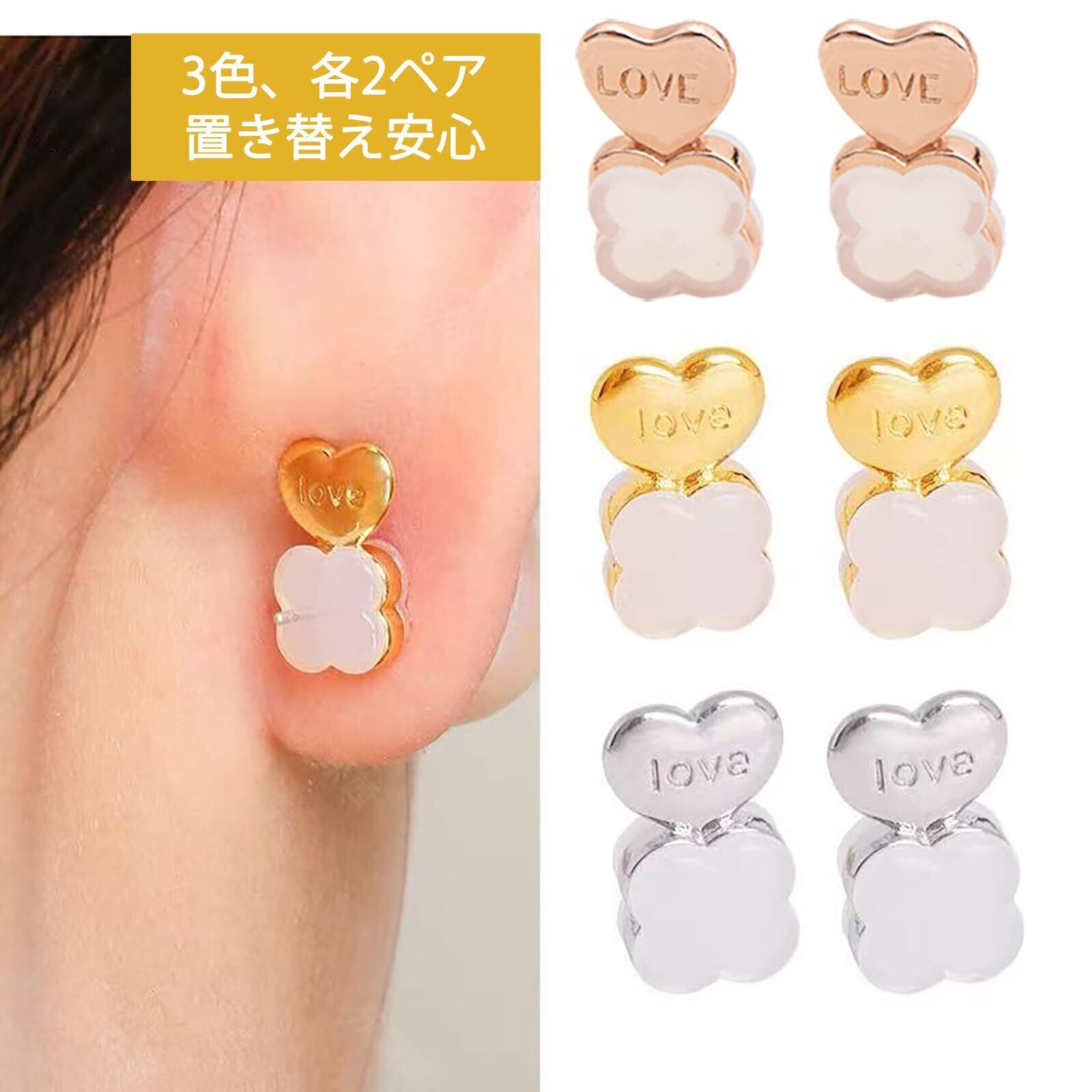 ピアス キャッチ シリコン 落ちない 引き揚げ 支える 6ペア(12個)セット アレルギー対応 K18メッキ 金属 女性 プラチナ ギフト 母の日 AS001-Leaf
