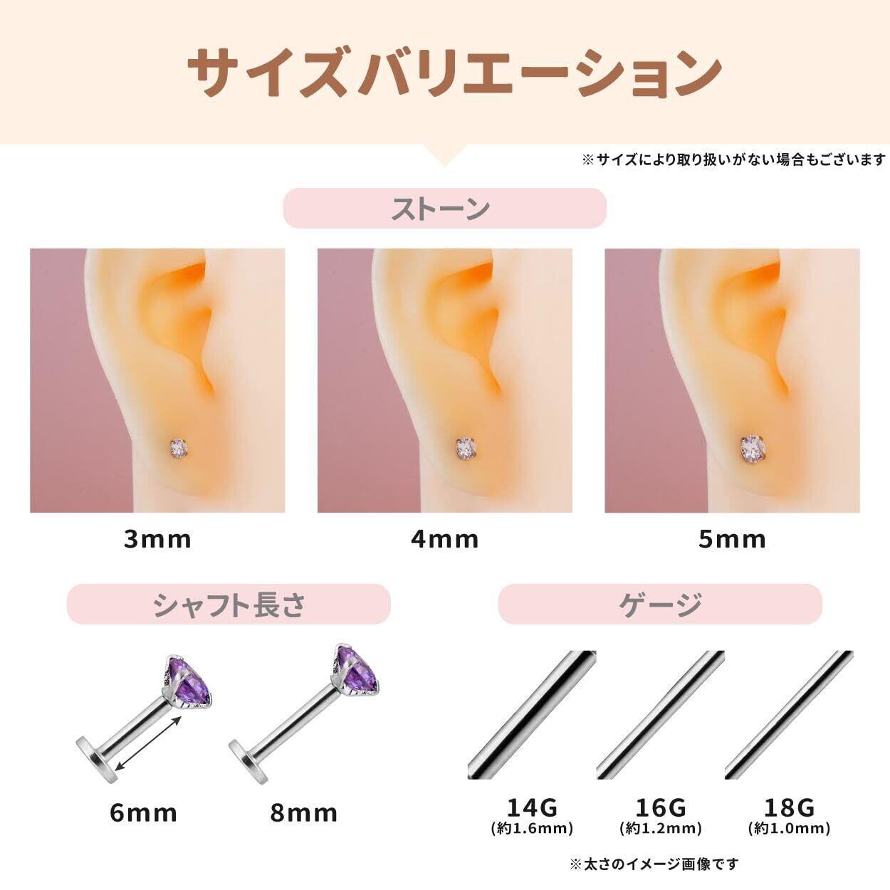 太さ14G,16G,18G ストーンサイズ3mm〜5mm シャフト長さ6mm〜8mmのラブレットスタッドです