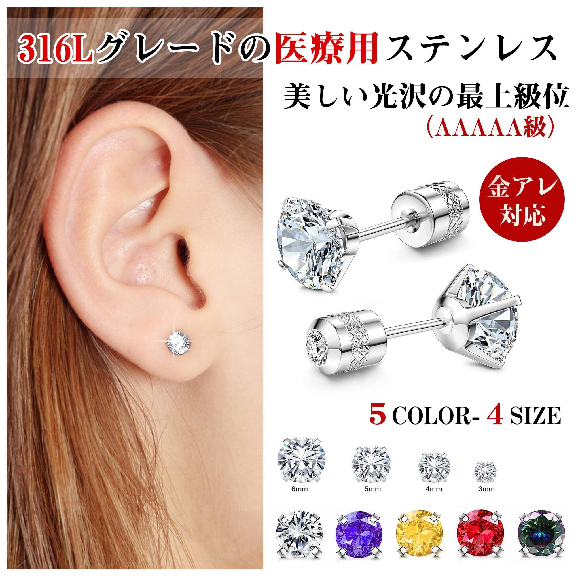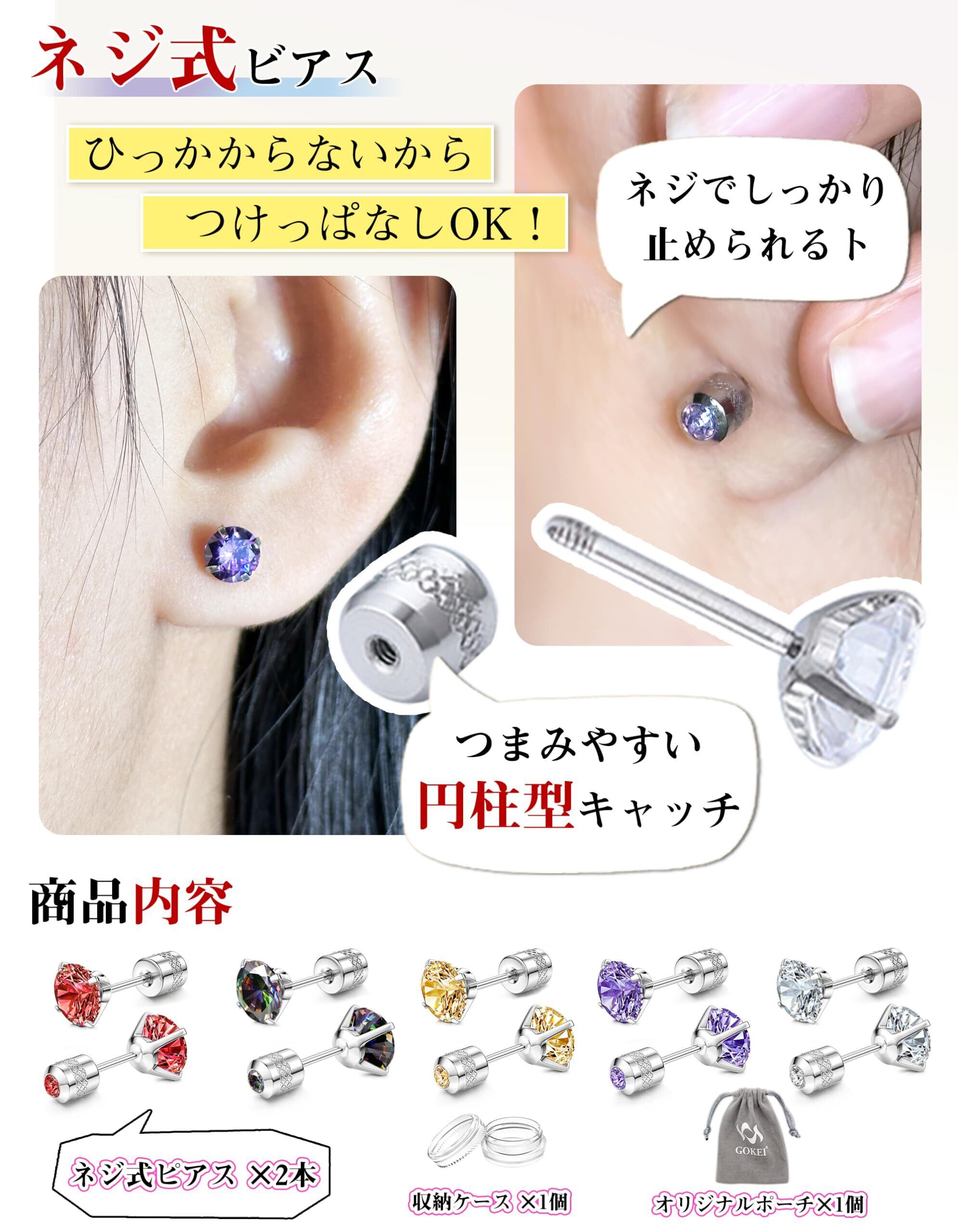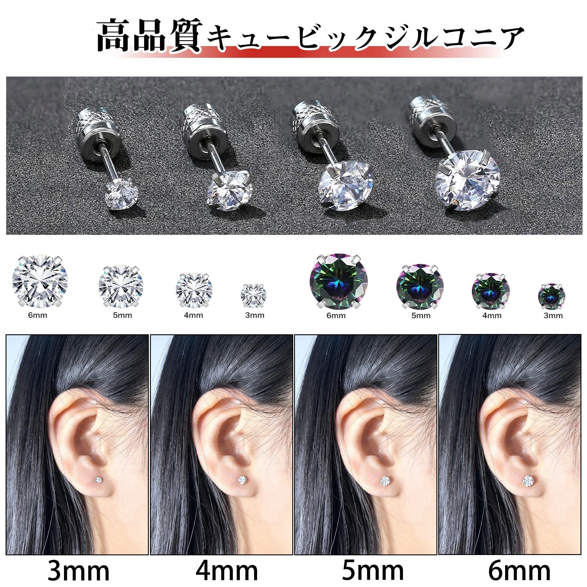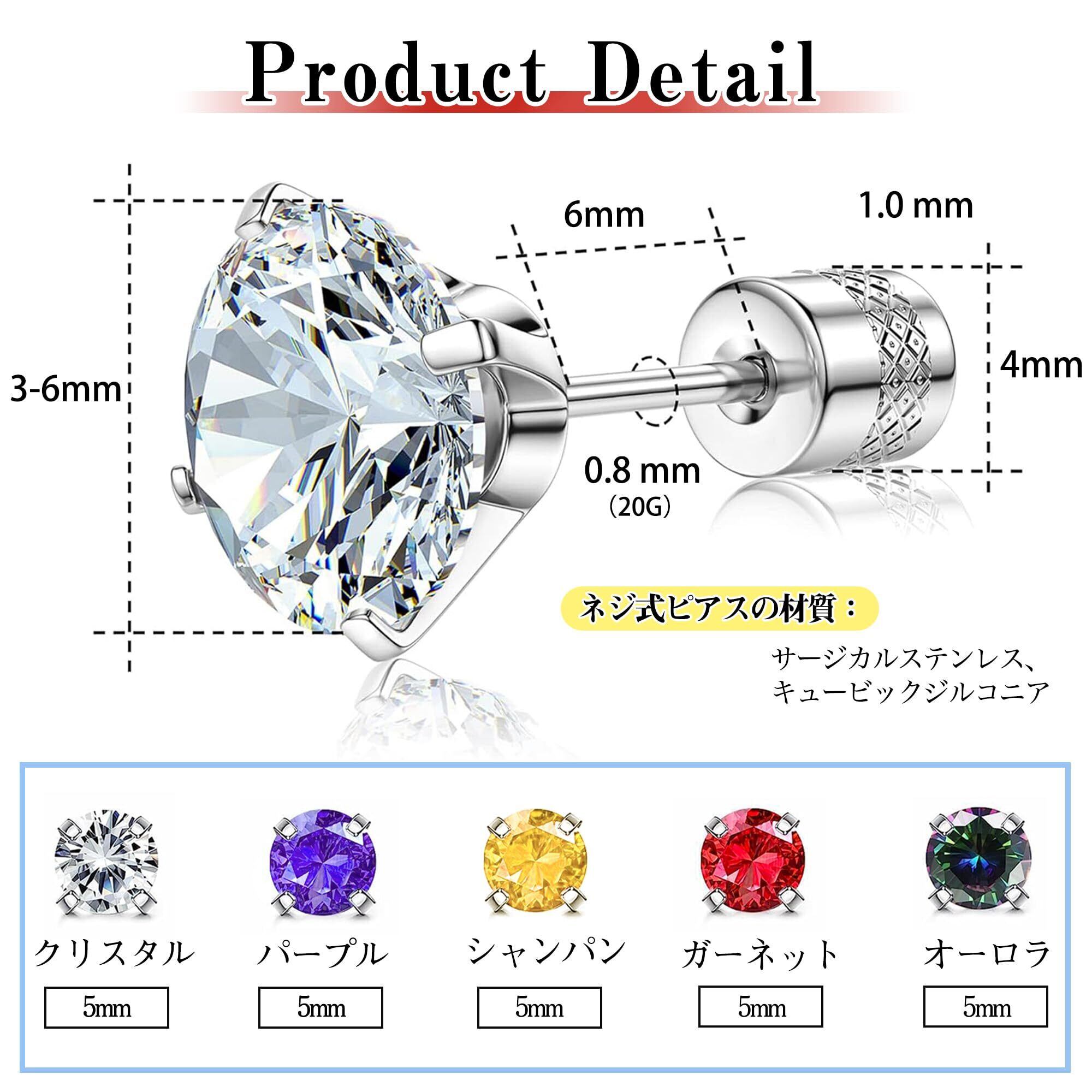 【商品内容&選べるサイズ】内容: 2本ネジ式ピアス+ 1個収納ケース 人気の5カラーとジュエルサイズ3mm、4mm、5mm、6mmの4サイズをご用意いたしました。 □ネジ式ピアスの材質:サージカルステンレス・キュービックジルコニア
