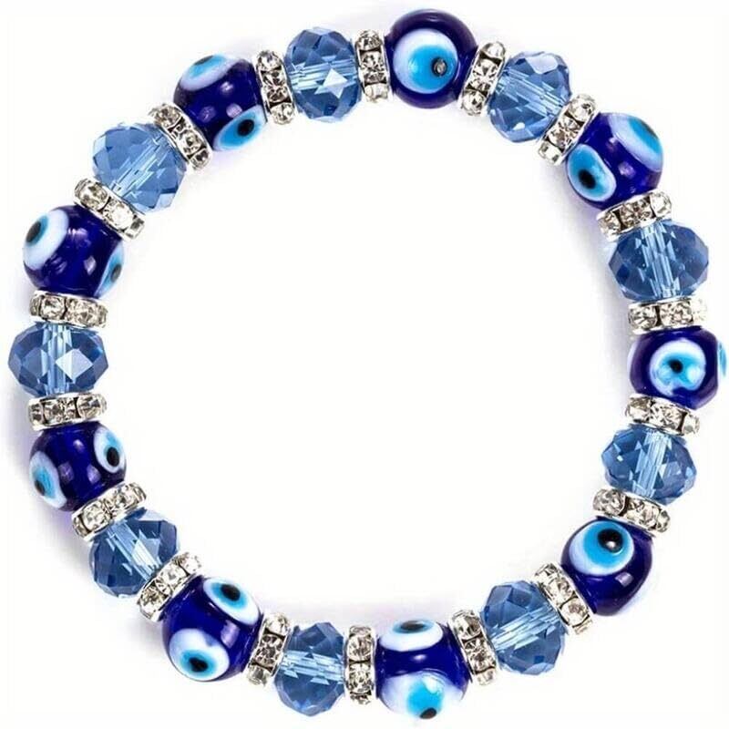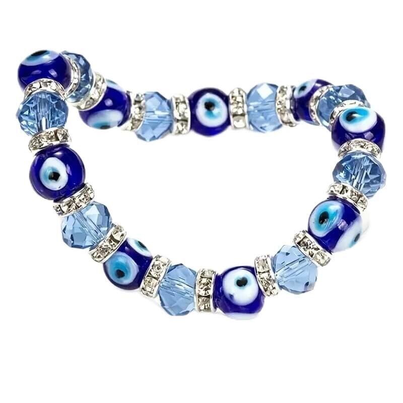 【在庫処分】ナザルボンジュウ キラキラビーズブレスレット 青い目玉のお守りNazar Boncugトルコ雑貨 トルコ土産 v-53