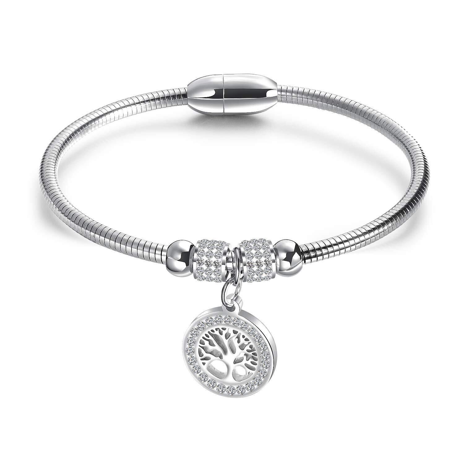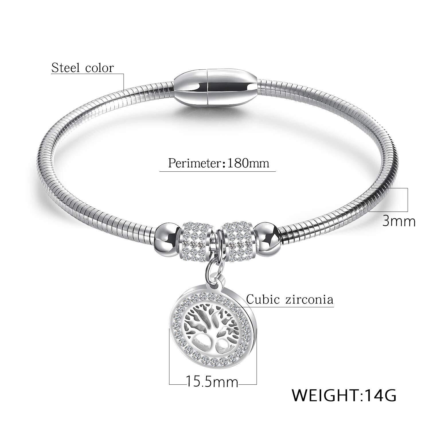 【人気商品】Rockyu ブレスレット レディース 人気 18金 ジルコニア 生命の樹 磁石型バングル 上品 純チタンブレスレット アレルギー対応