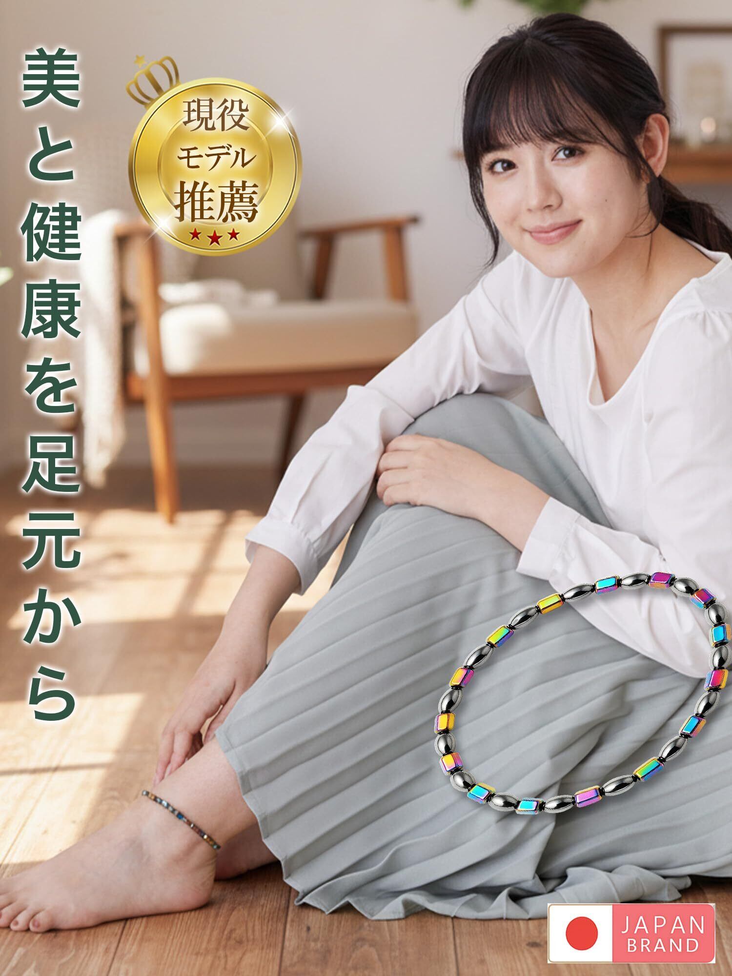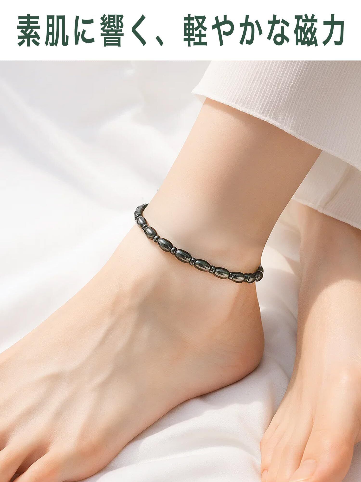 【磁気アンクレット】足元にさりげない存在感を足せるファッションアクセサリー。パンツにもスニーカーにも合わせやすく、主張しすぎないのに雰囲気がまとまりやすいのが魅力です。