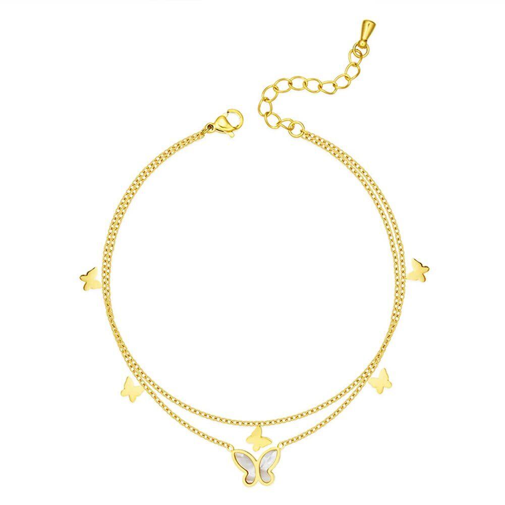 アンクレット レディース つけっぱなし あずきチェーン 二連 蝶アンクレット 貝殻 バタフライペンダント ステンレス 金属アレルギー対応 誕生日 パーティー プレゼント ファッション アクセサリー