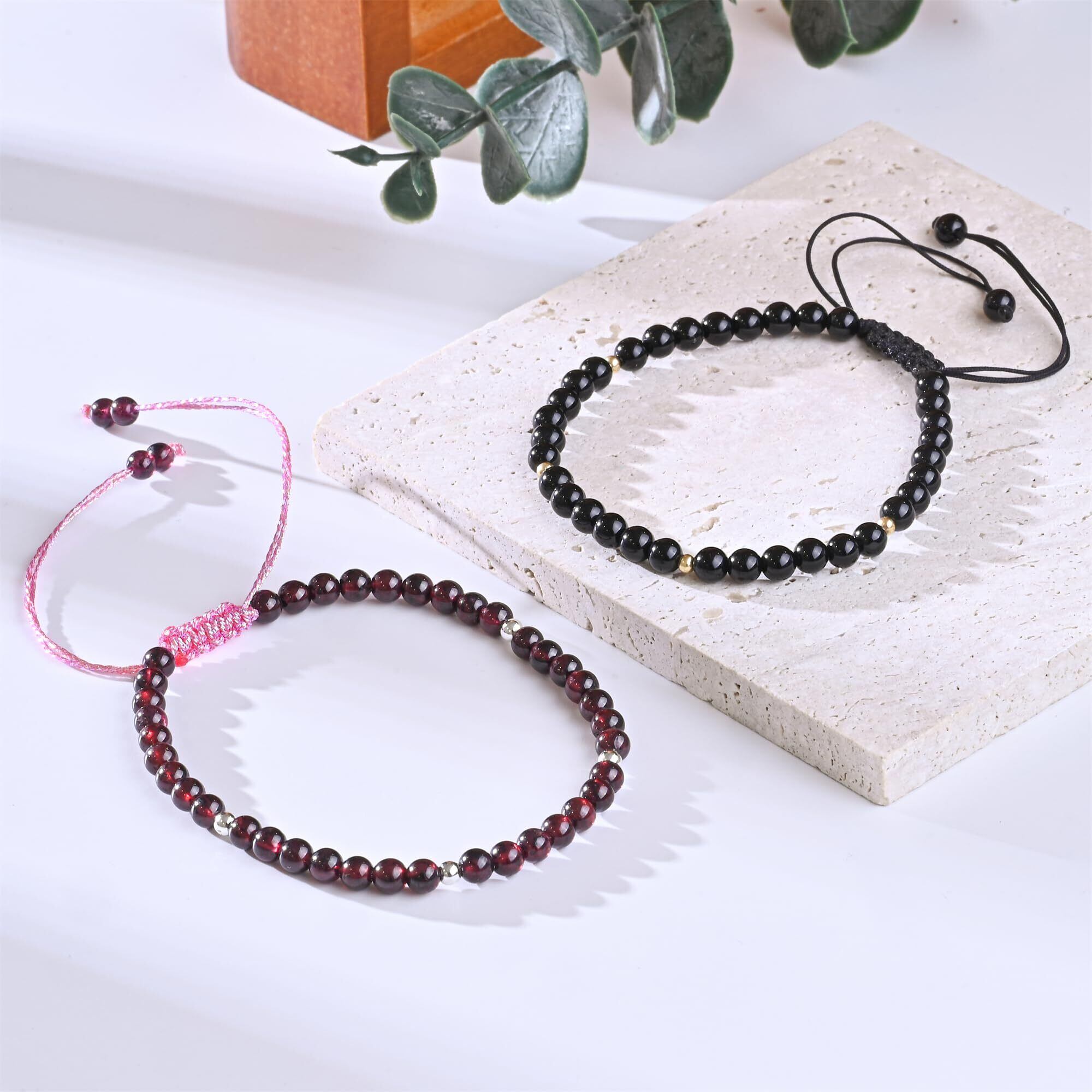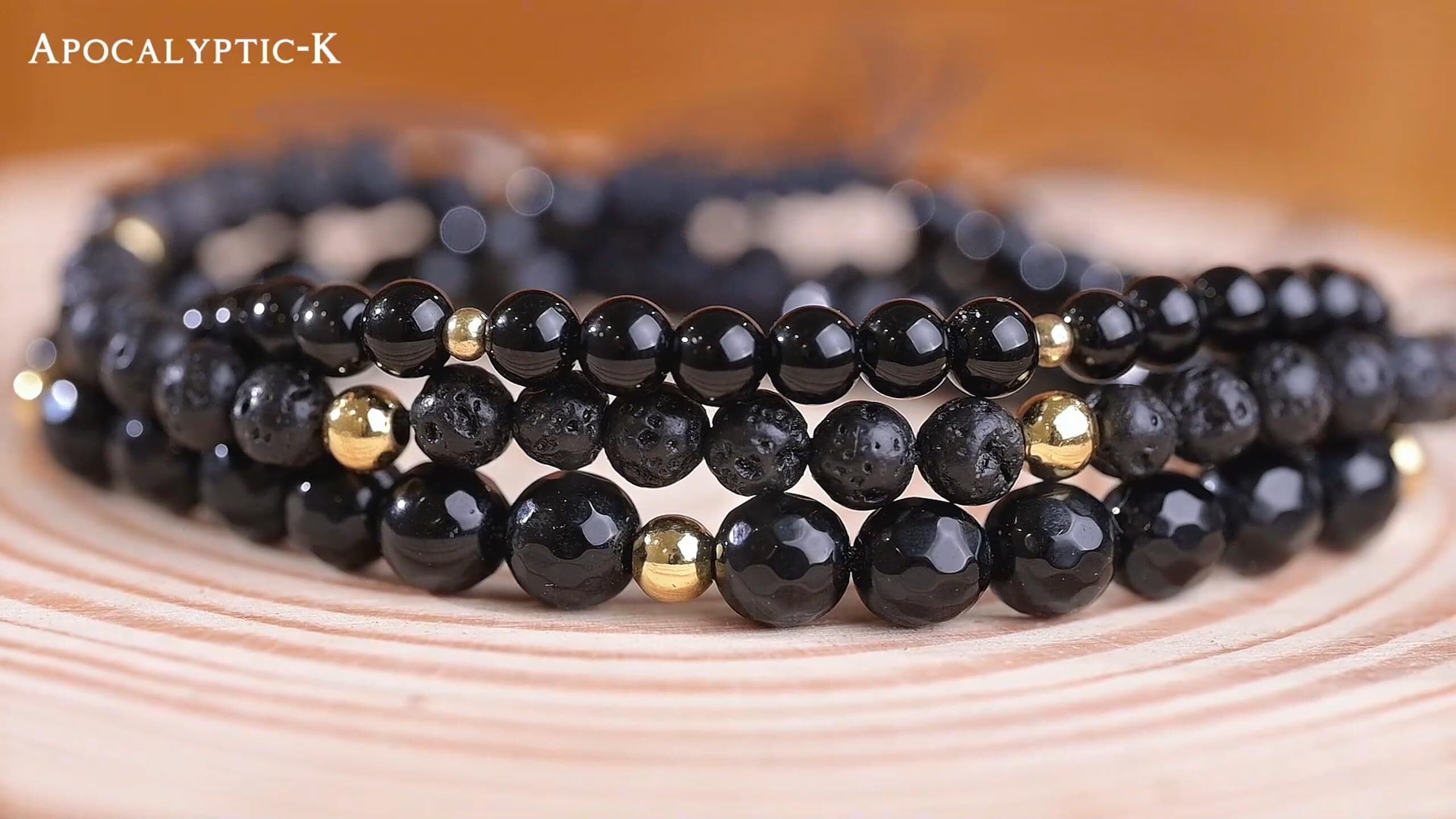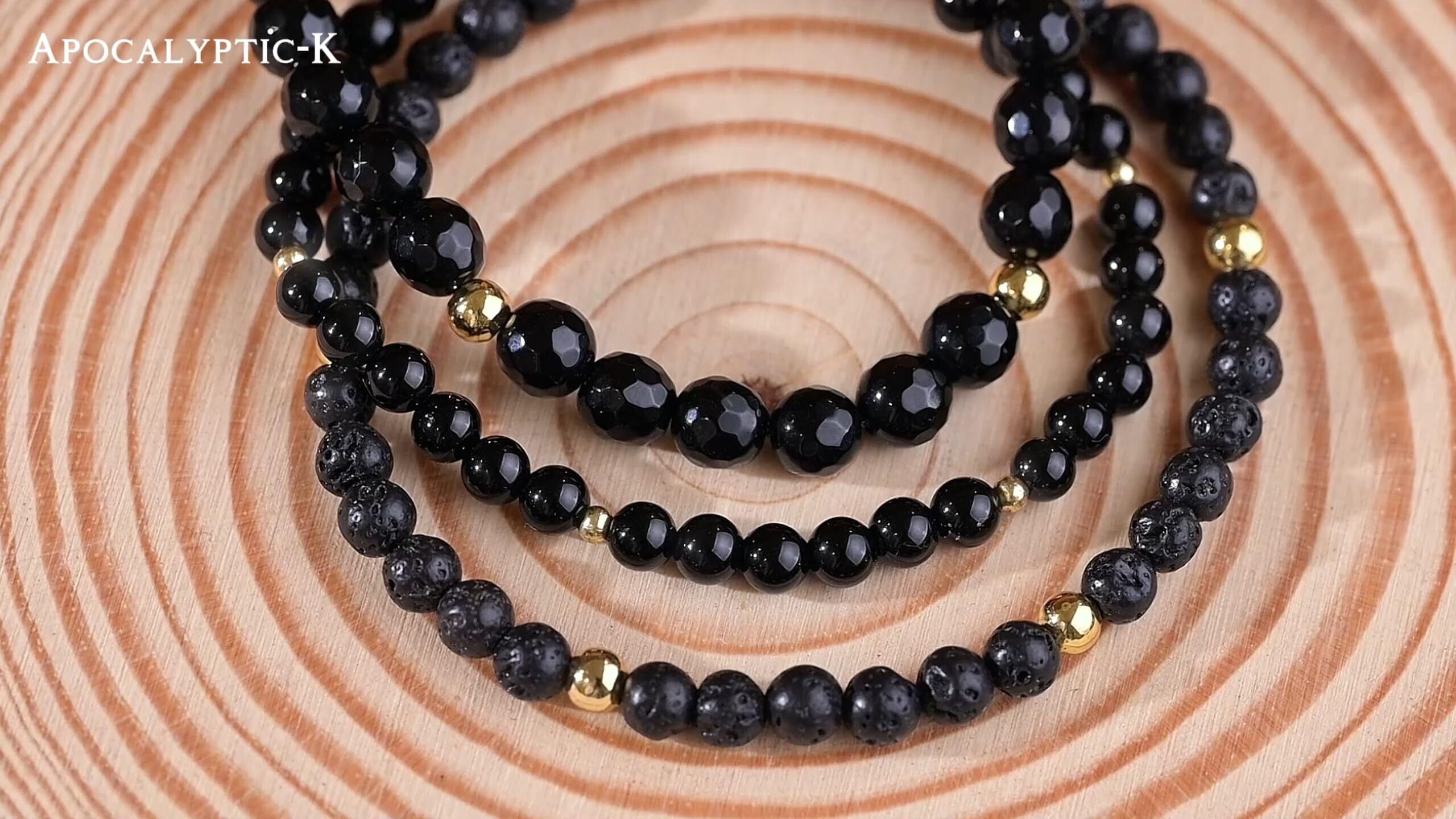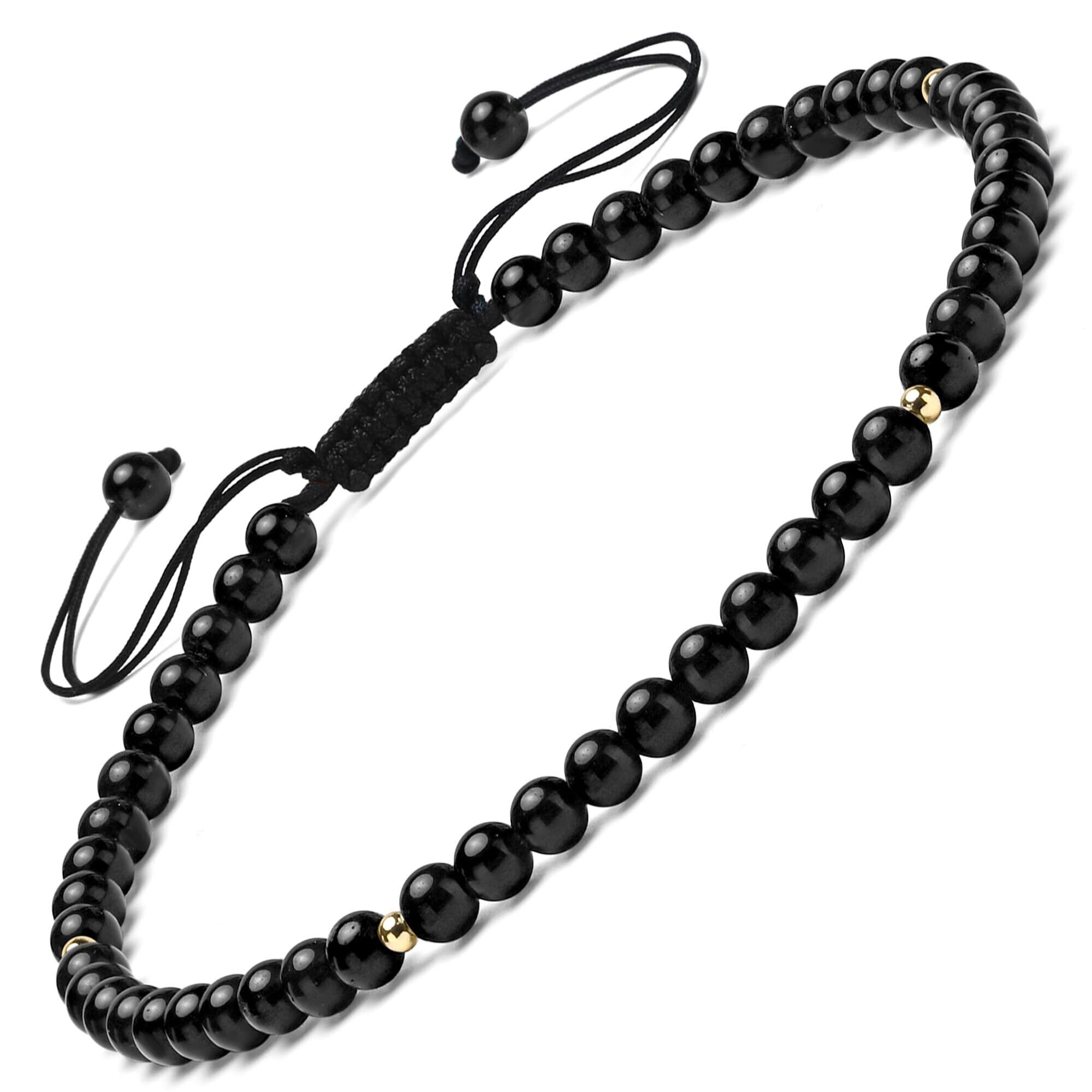 素材構成: トルマリン、オブシディアン、タイガーアイ、オニキスの4種類の天然石を使用した高級アンクレット