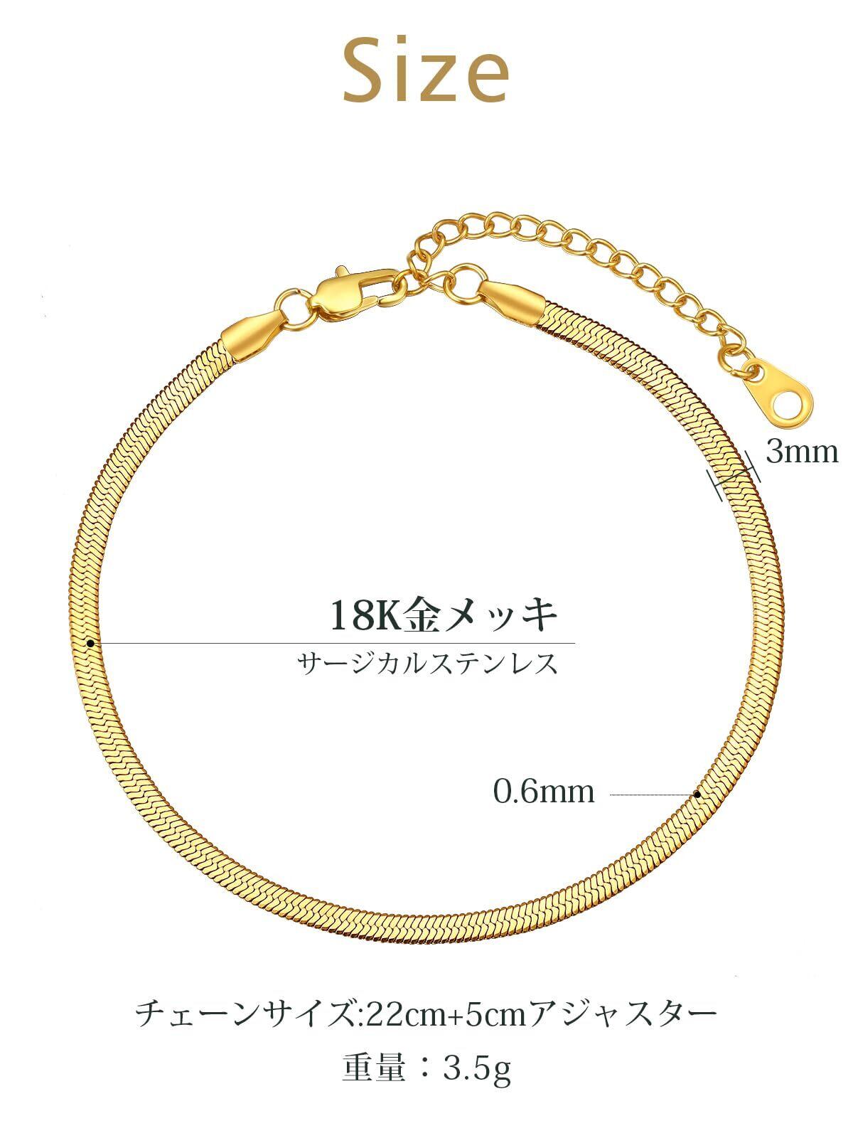 スネークチェーン アンクレット ブレスレット レディース サージカルステンレス アレルギー対応 幅3mm 5mm シンプル 女性 アクセサリー