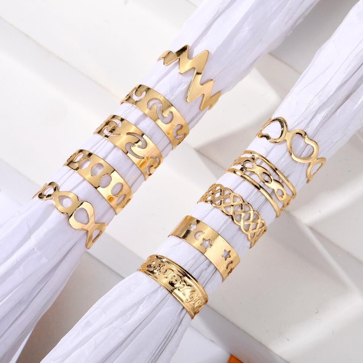 トゥリング レディース ゴールド シルバー フリーサイズ 波型モチーフ 星形 稲妻風 8字デザイン入り リング 10点セット 合金 軽量 調整可能 ビーチ リゾート向け