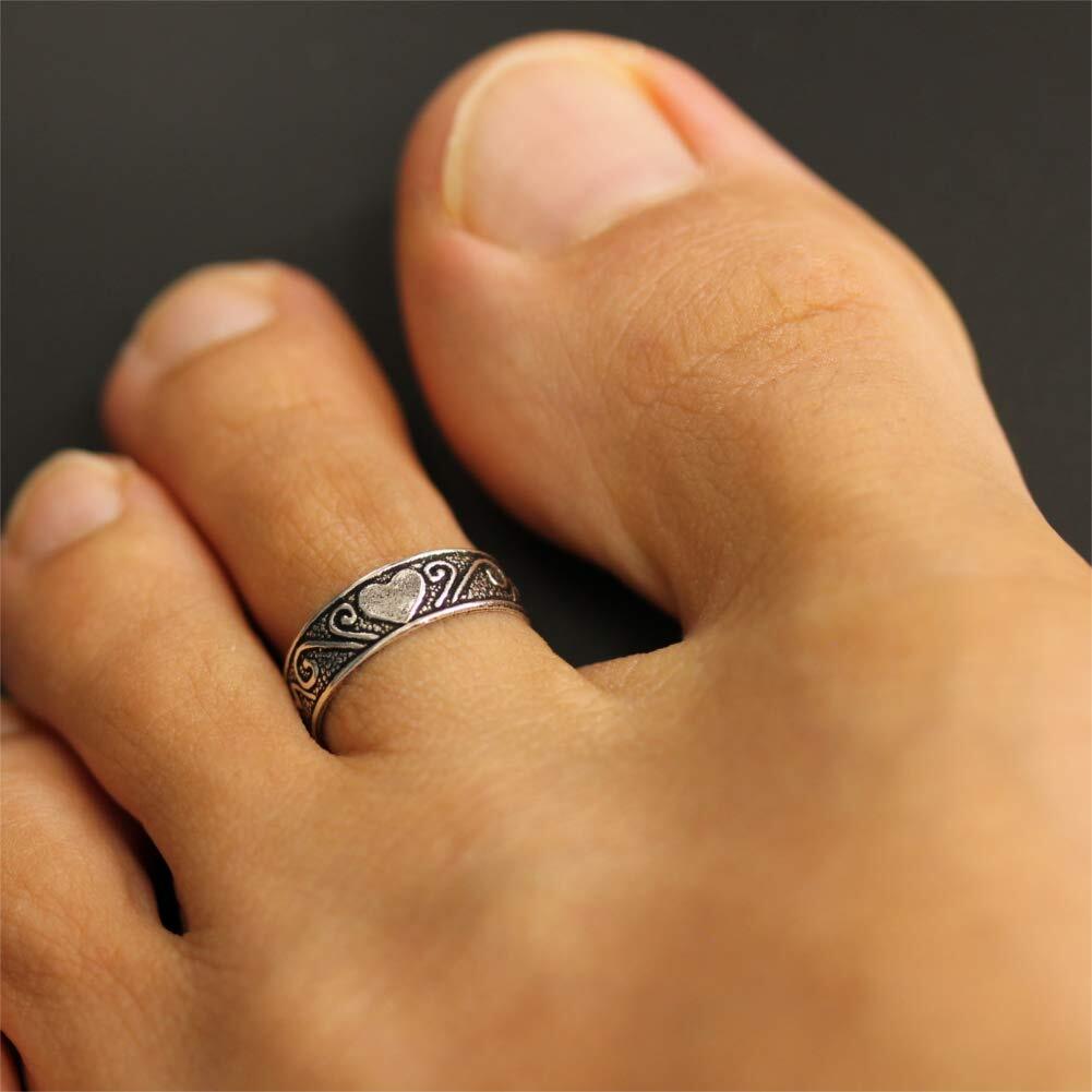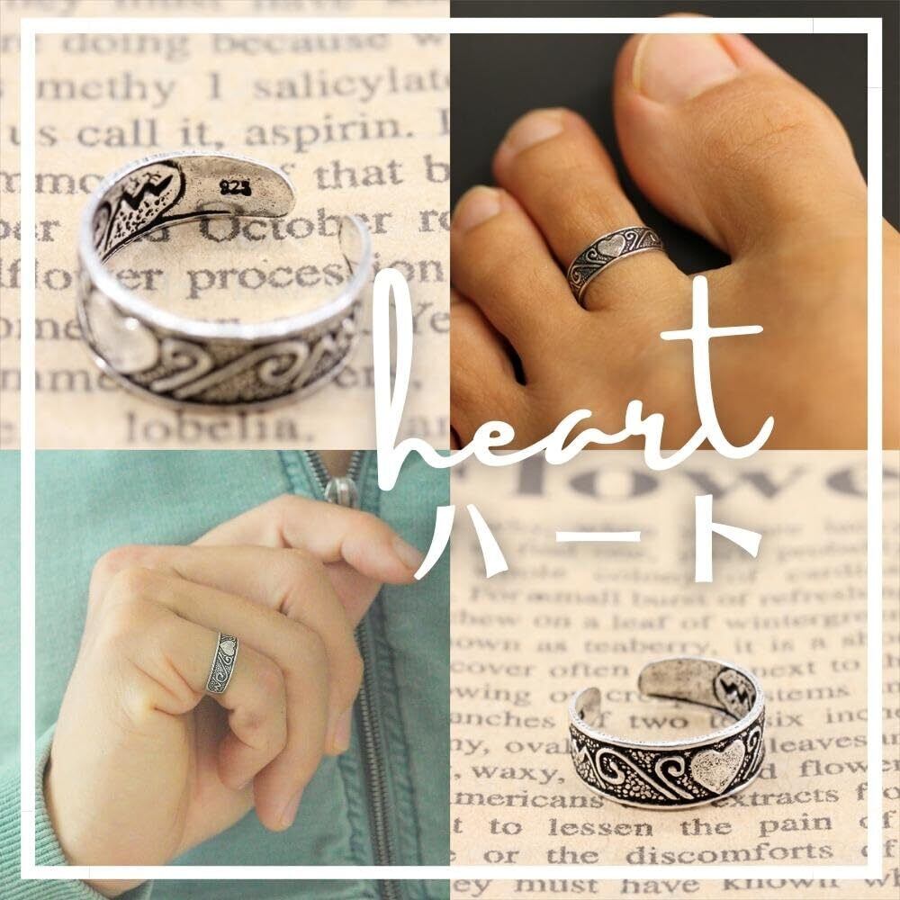トゥーリング 足 指輪 シルバー 925 サイズ調整可 シンプル メンズ (ハート)