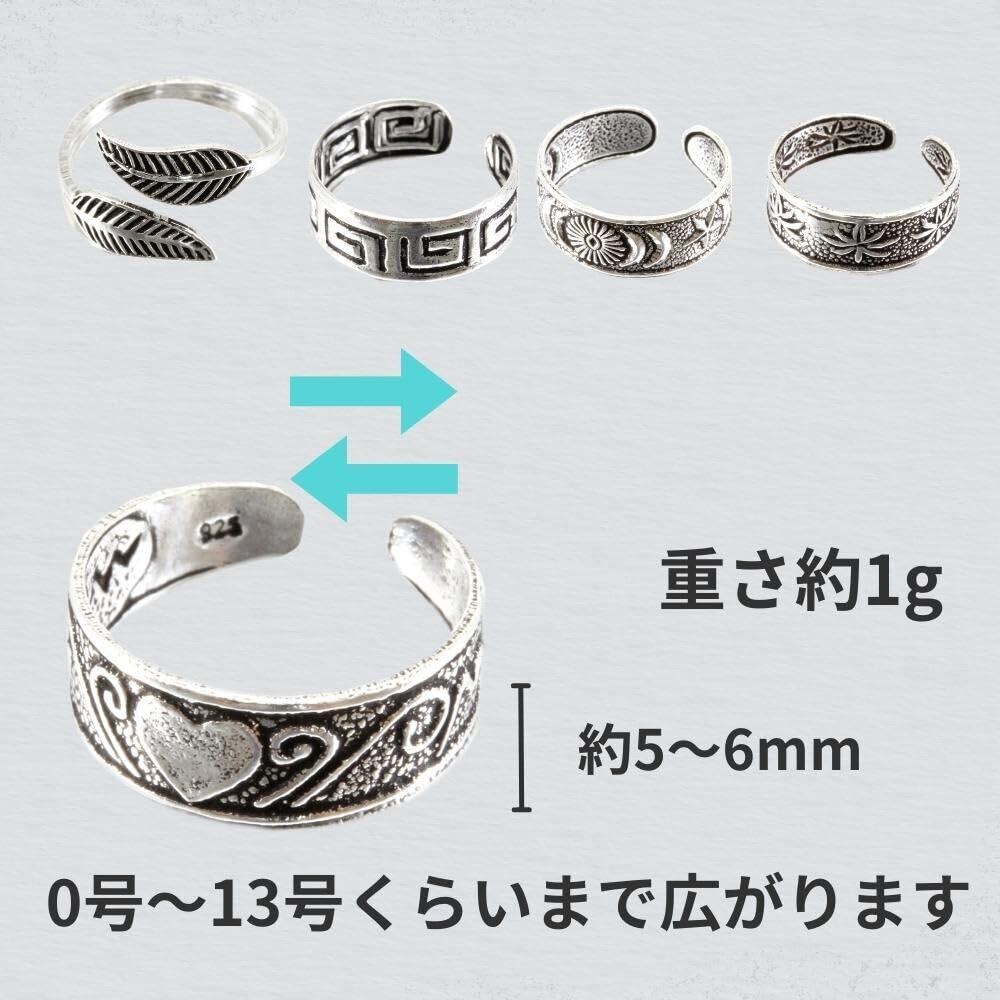 【新春セール】トゥーリング 足 指輪 シルバー 925 サイズ調整可 シンプル メンズ (ハート)