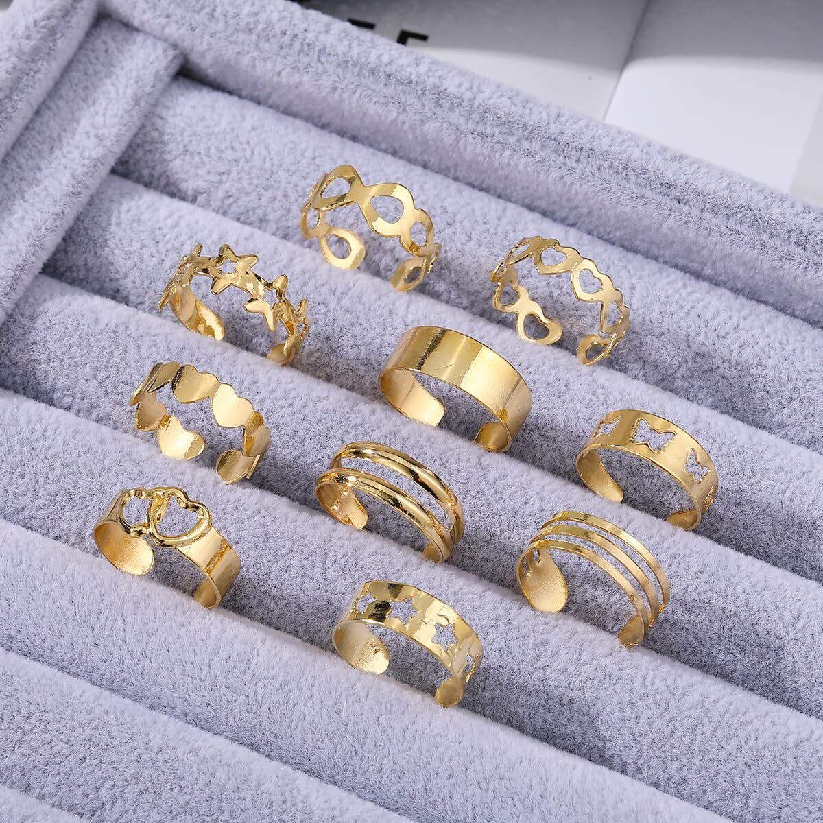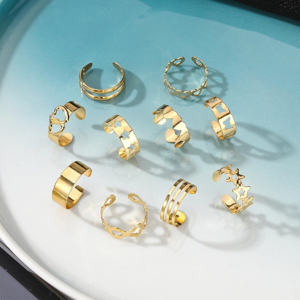 トゥリング レディース 10点セット ゴールド シルバー フリーサイズ 開口式 星柄 蝶モチーフ ハートデザイン 合金製 足元アクセサリー サマーコーデ ビーチ向け
