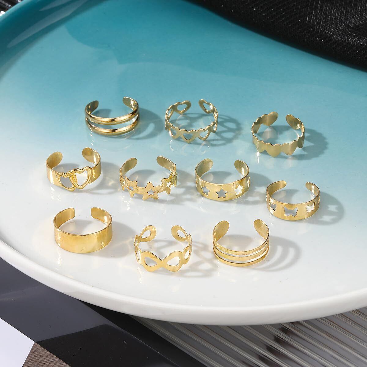 【特価商品】トゥリング レディース 10点セット ゴールド シルバー フリーサイズ 開口式 星柄 蝶モチーフ ハートデザイン 合金製 足元アクセサリー サマーコーデ ビーチ向け