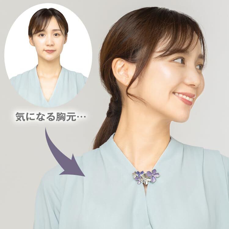 胸元カバー ブローチ 開き 隠す クリップ チラ見え防止 洋服 留め具 服に穴を開けない ノーピン 滑り止め付き 軽い 生地傷めない レディース (華咲くブローチクリップ)