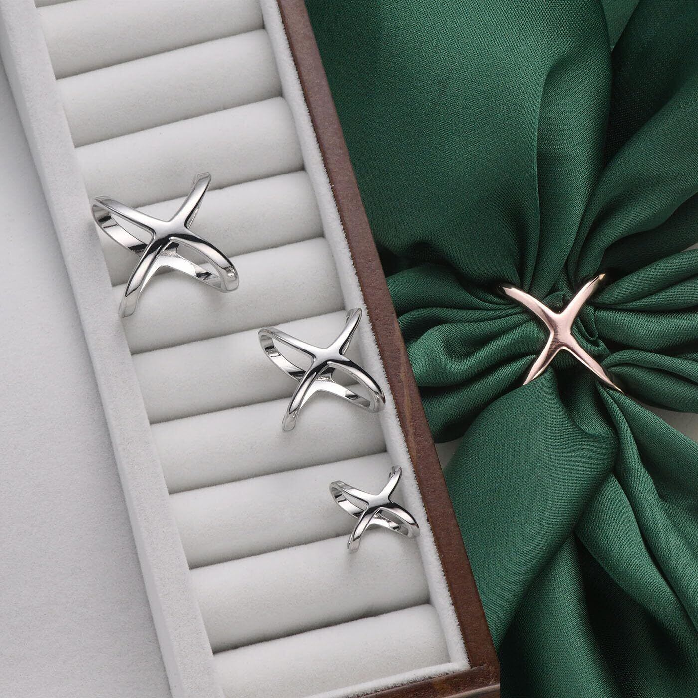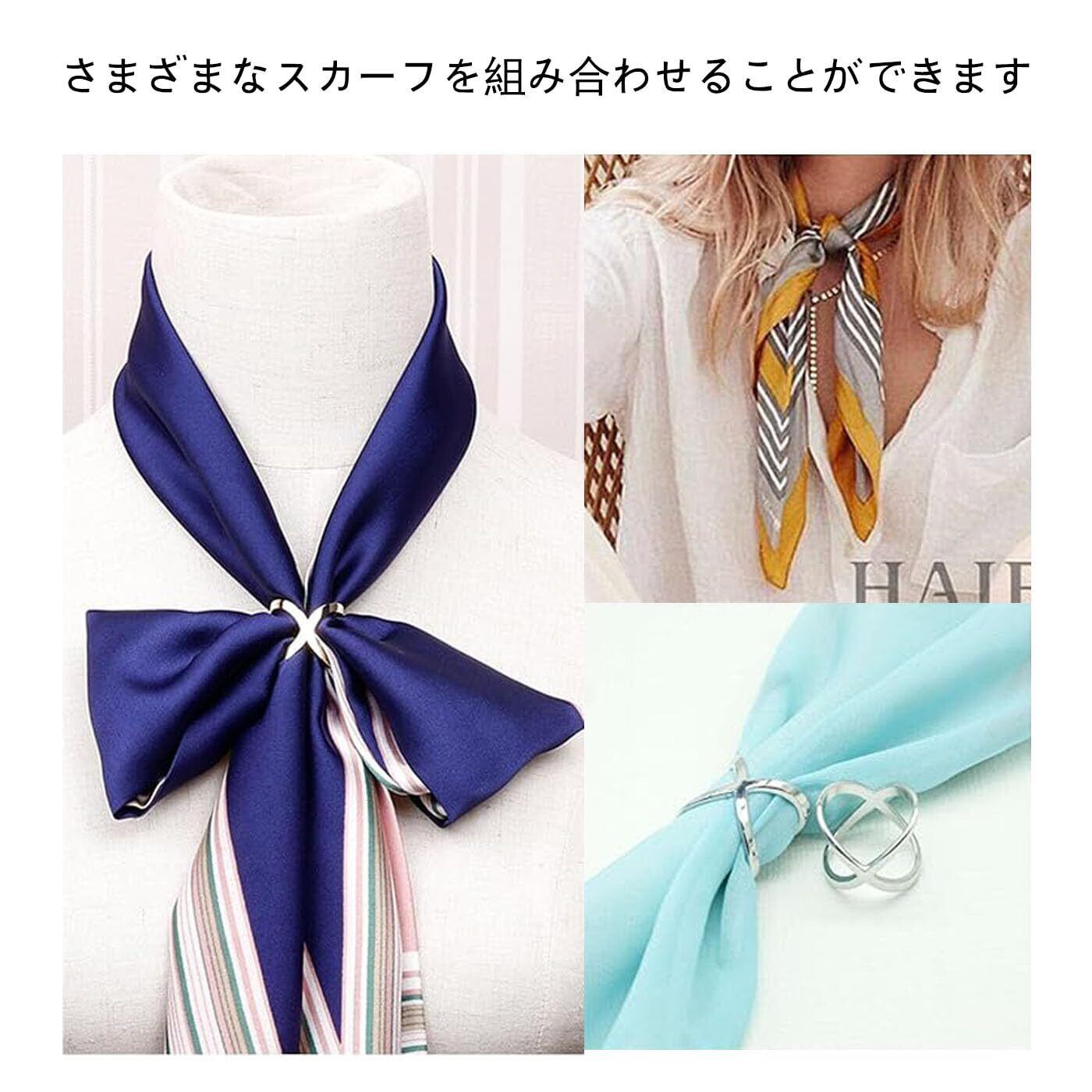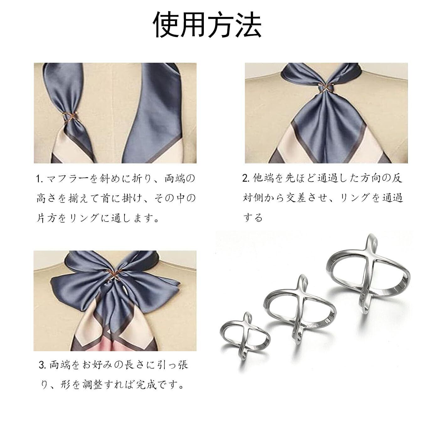 合金素材 スカーフリング 3サイズ3個セット クロスオーバー形 スカーフ留め 大人のブローチ スカーフバックル 通すだけで簡単アレンジ (シルバー) メントルース対応 落ちない設計
