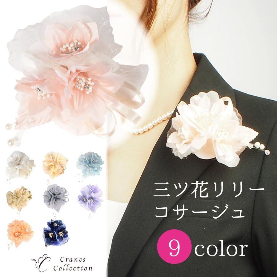 手作り リリー コサージュ ブローチ ピン クリップ フォーマル シーン や エレガント な装いに パープル
