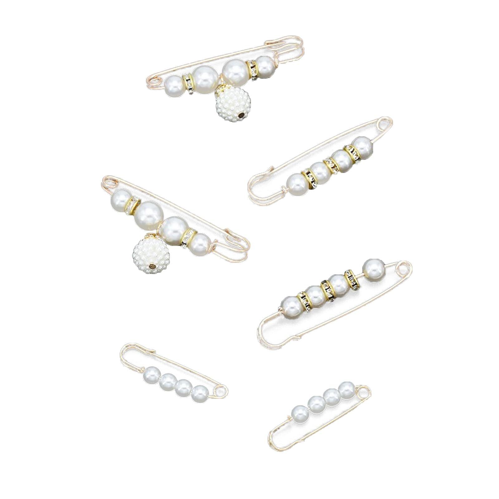 【新春セール】ブローチピン 6点セット 安全ピン 襟ピン ピンバッジ ショールピン 人工真珠 パール ブローチ レディース アクセサリー 人気 装飾用 贈り物合金 縫製不要