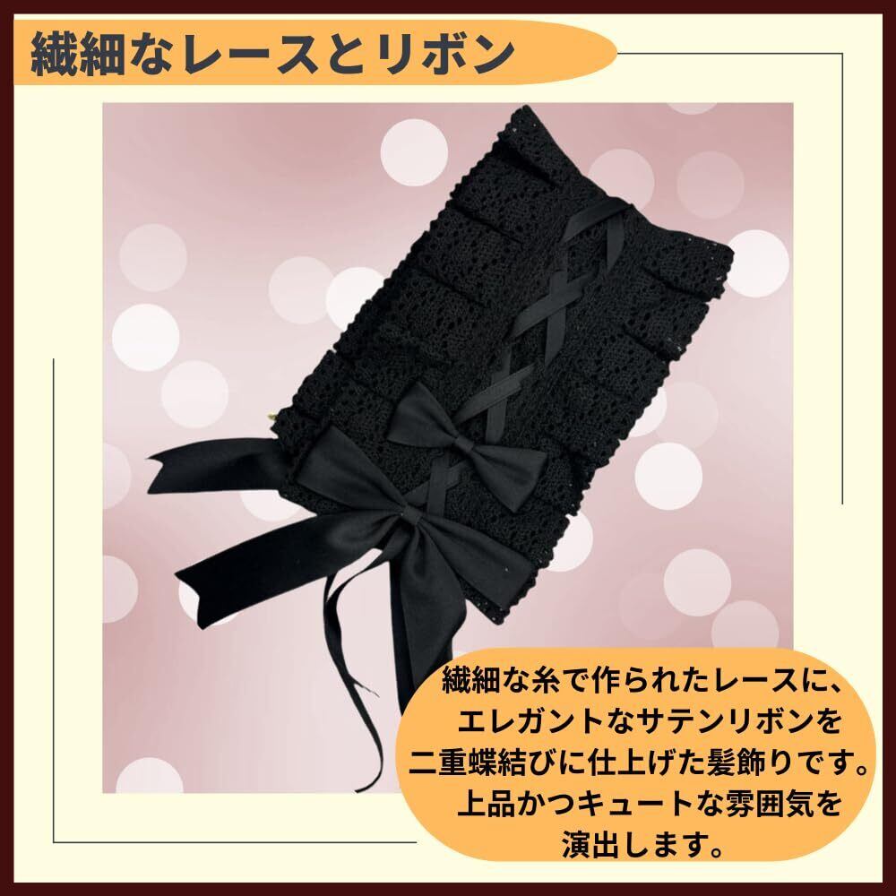 【レースとリボン】繊細な糸で作られたレースに、エレガントなサテンリボンを二重蝶結びに仕上げた髪飾りです。 優しい印象を感じるデザインで、上品かつキュートな雰囲気を演出します。