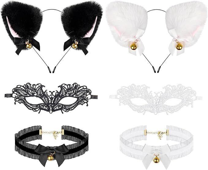 猫耳 カチューシャ 鈴付き コスプレ かわいい髪飾り 黒 白 ちょう結び ハロウィン クリスマス ふわふわ耳 コスチューム 仮装 小物 カップル 男女兼用 プレゼント ギフト