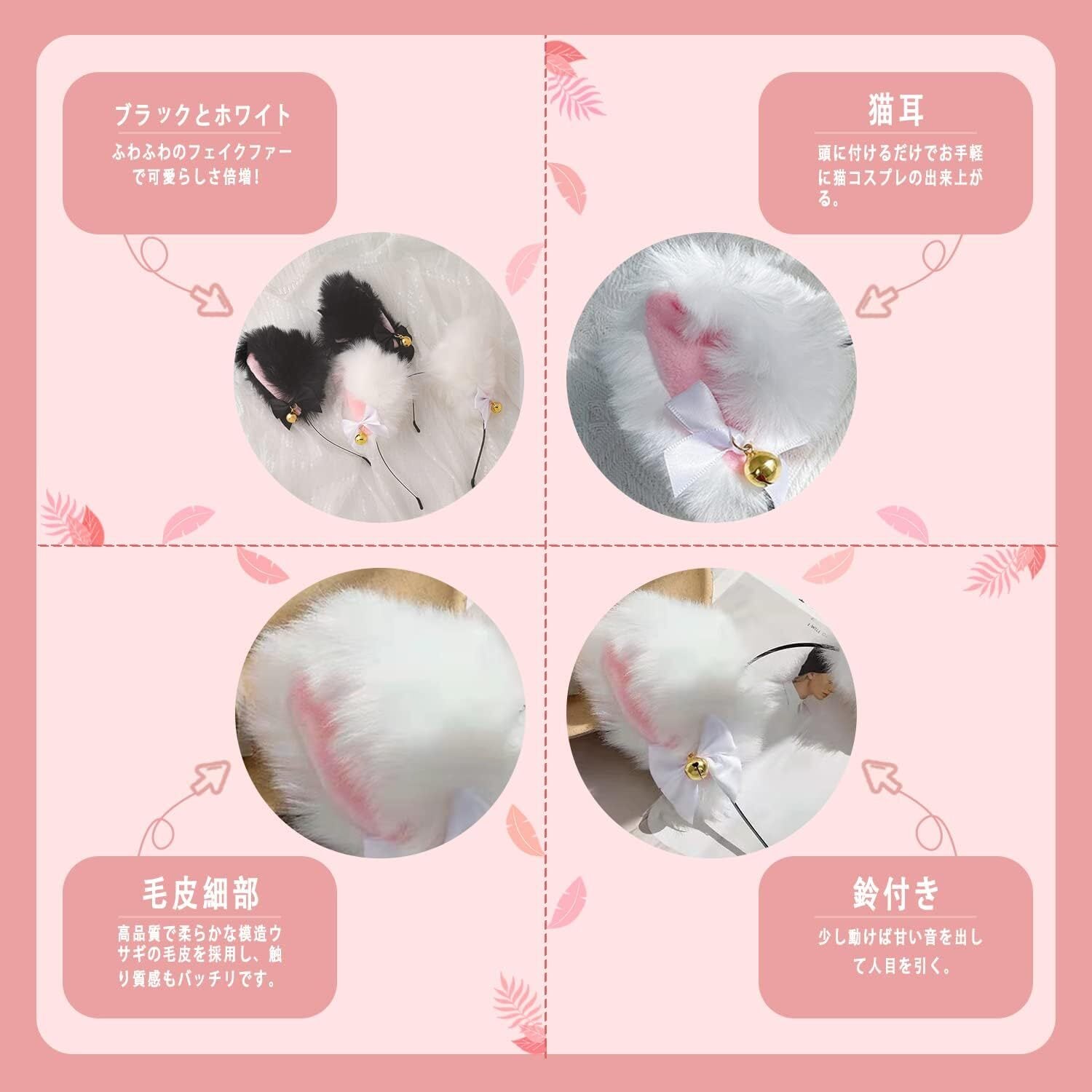 猫耳 カチューシャ:高品質で柔らかな模造ウサギの毛皮を採用し、触り質感もバッチリです。 頭に付けるだけでお手軽に猫コスプレの出来上がる。 鈴がしっかりと音が鳴ります。少し動けば甘い音を出して人目を引く。 カチューシャタイプで耳の位置も自由に移動でができるので自分好みのアニマルになれちゃいます。