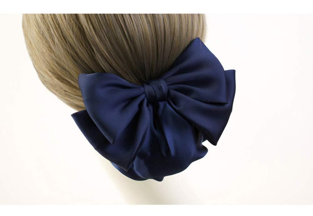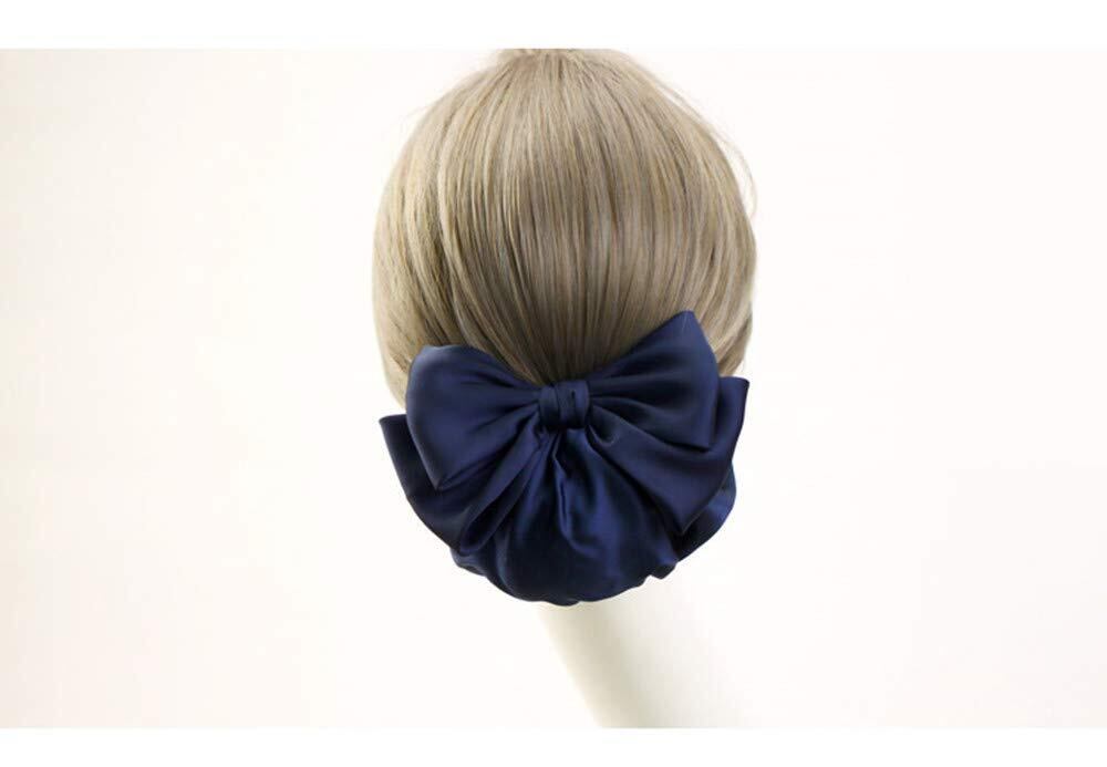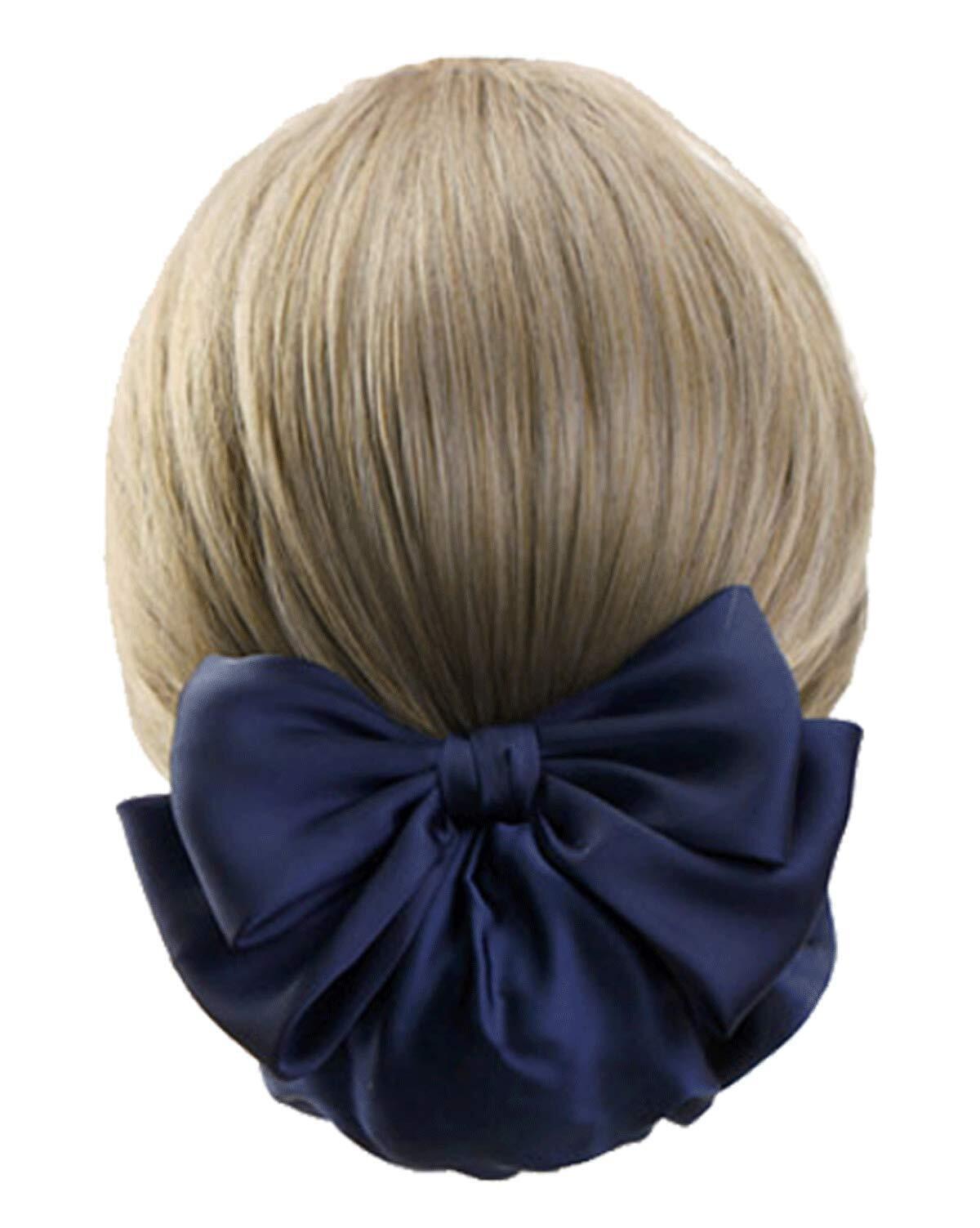 ヘアスタイル、見ちがえる。3色展開 お団子ネット リボン バレッタ ネット付き シニヨン バレッタ おだんご ネット シニヨンネット お団子カバー 髪留め ネット付きバレッタ ネイビー Berrylily