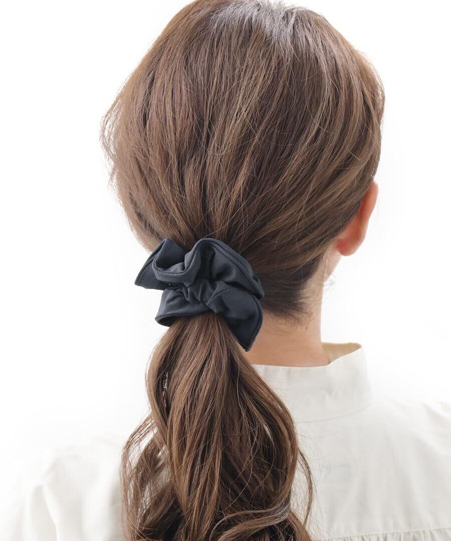 程よく張りのあるシンプルなカラーシュシュ。コンパクトなサイズ感がちょうどよく、デイリーからオフィス使いまで様々なシーンで活躍してくれます。