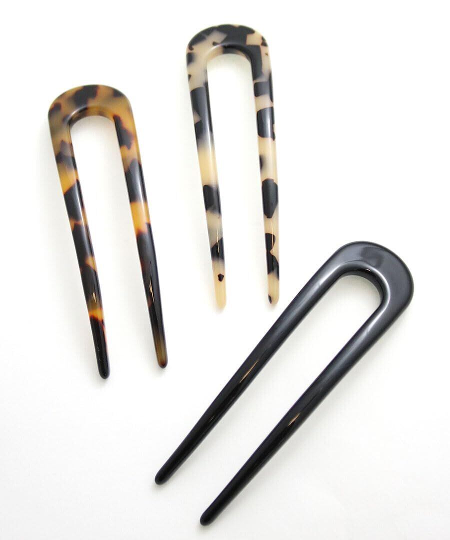 VINGTAINE U字コーム べっ甲風 かんざし 二又 和装 まとめ髪 シンプル ヘアアクセサリー ギフト プレゼント H7726