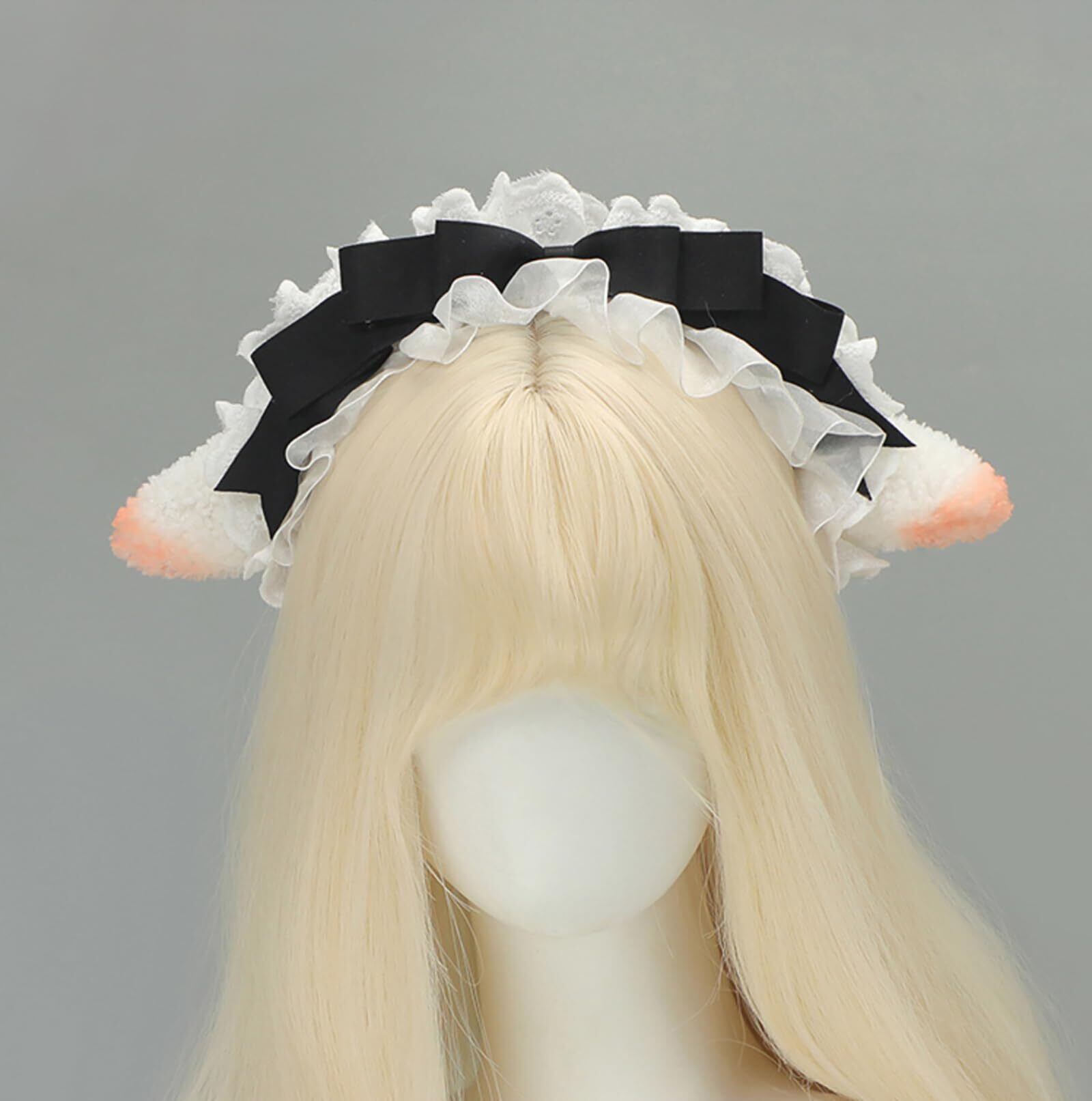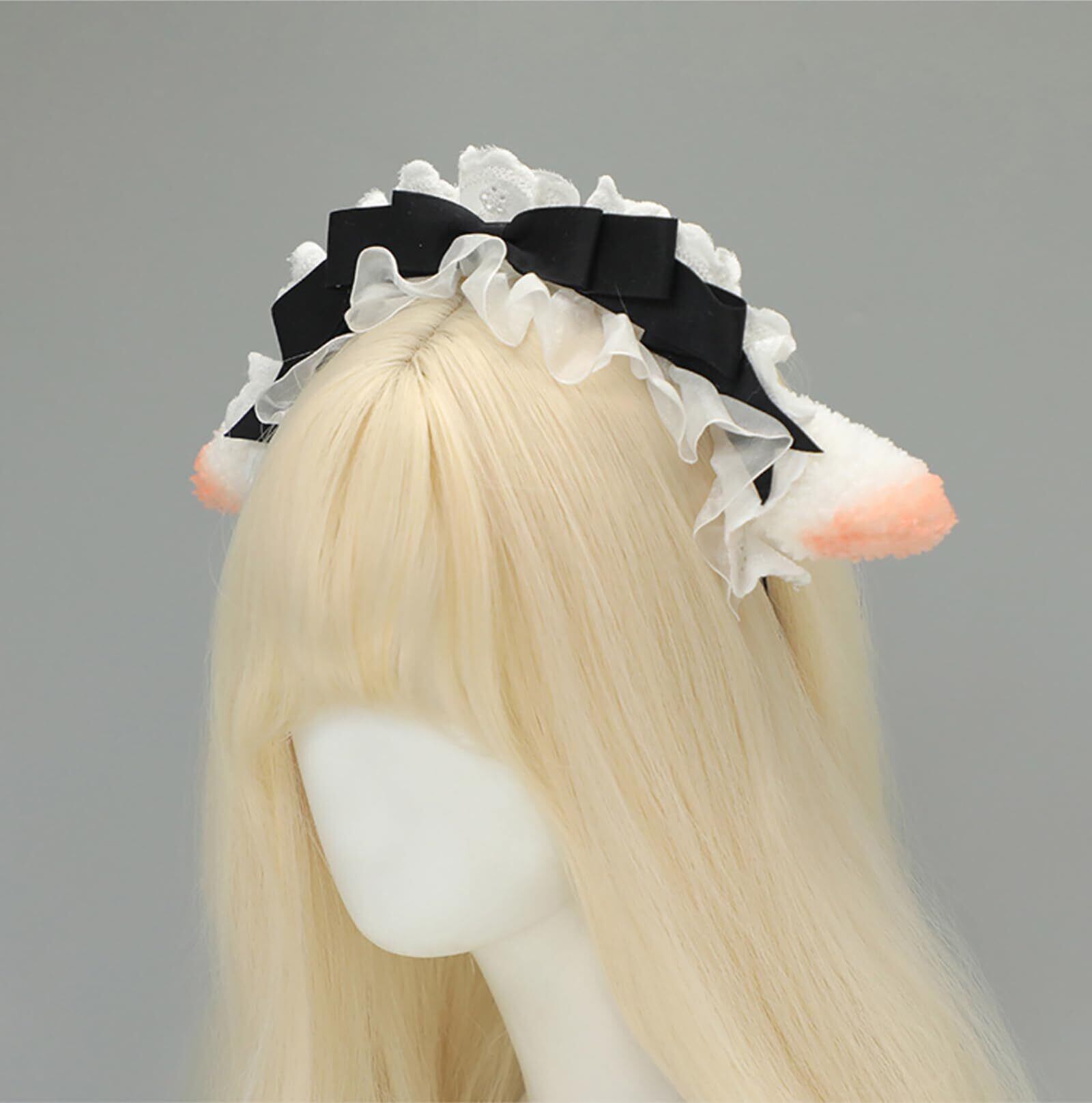 デザイン: 愛らしい羊耳デザインとレース素材を組み合わせた、ユニークで可愛らしいヘッドドレス