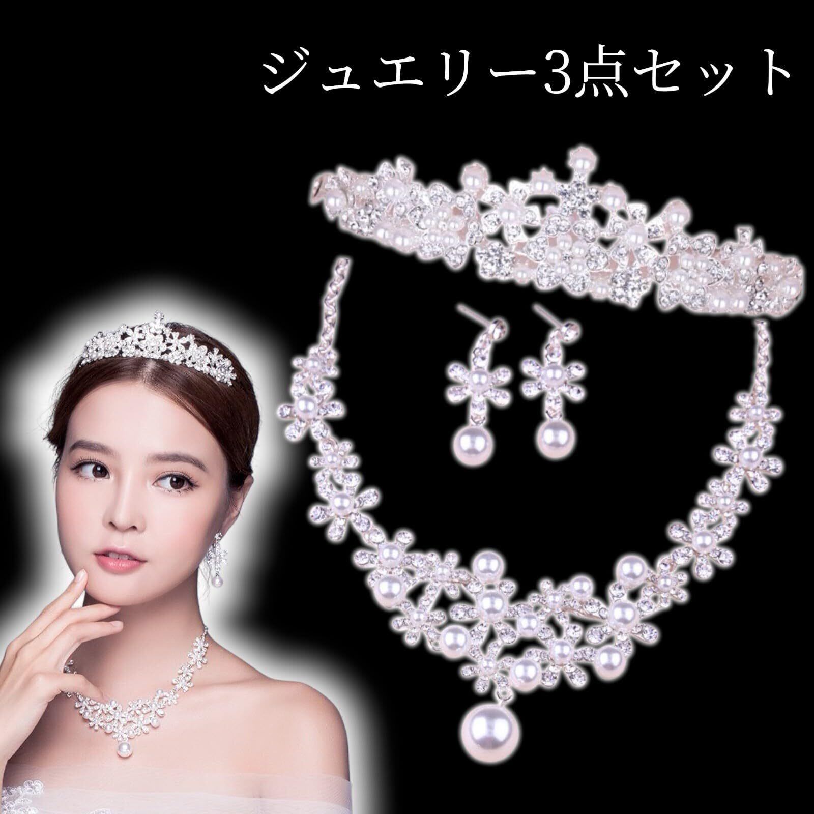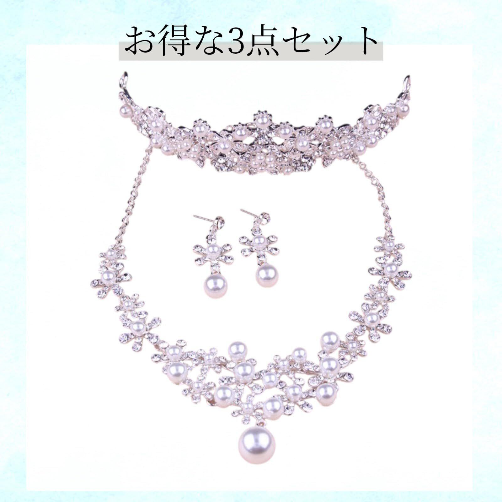 【人気商品】ティアラ パール 卒業式 大人 3点セット 成人式 結婚式 子供 シルバー カチューシャ 誕生日 シンプル ウェディング 女の子