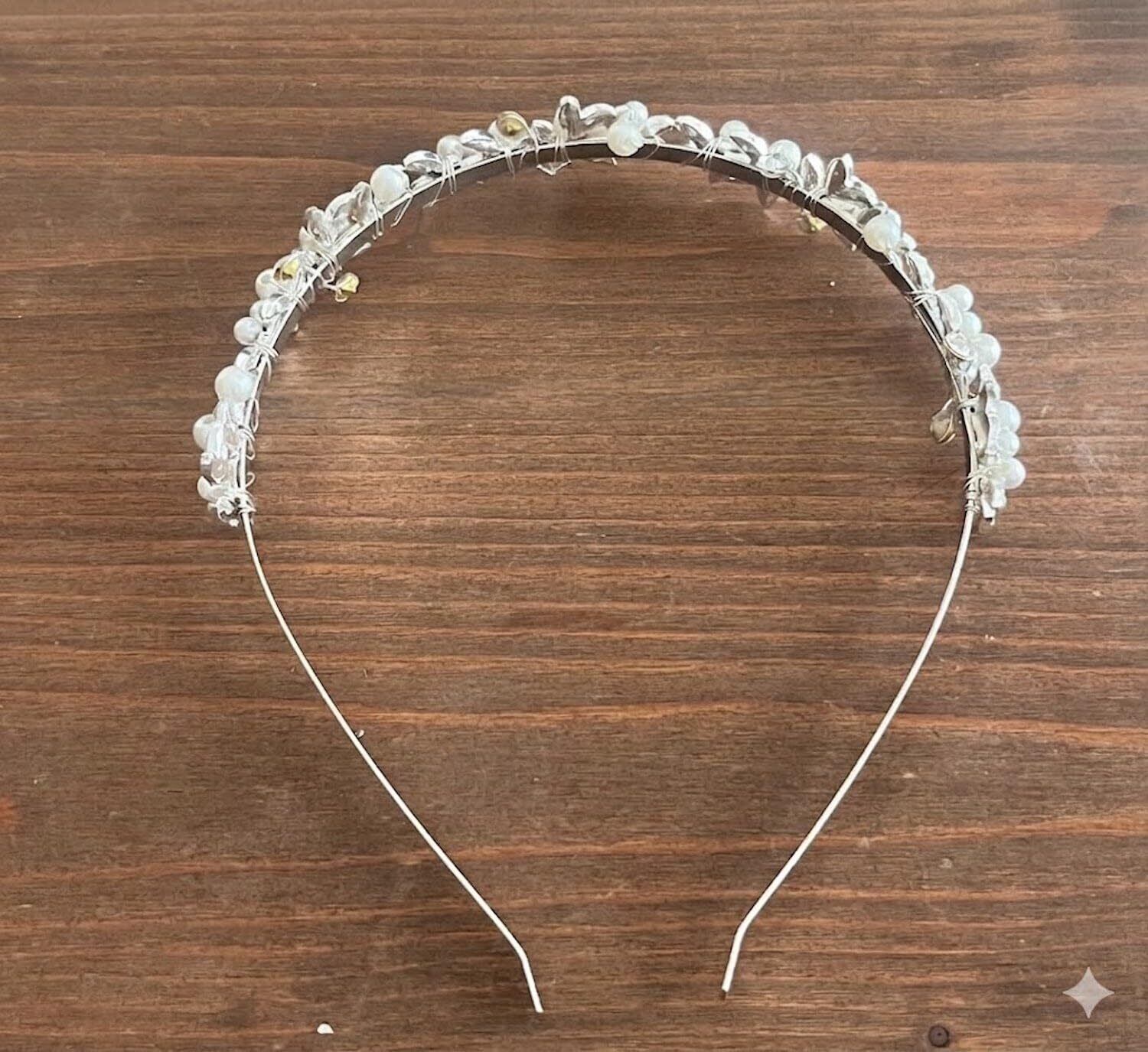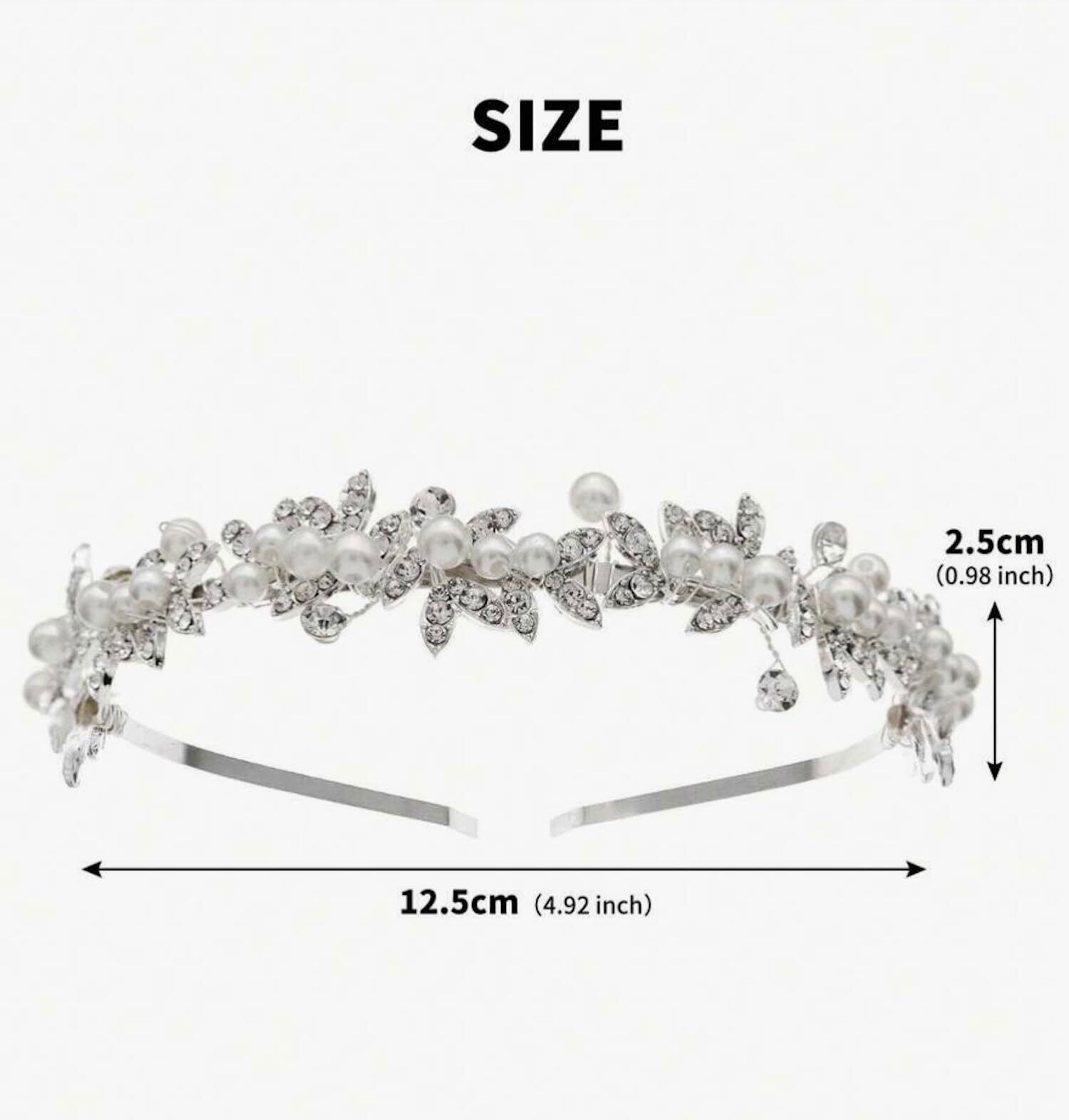 【サイズ】約12.5㎝、円周サイズ:約30cm【高さ】約2.5cm 【重さ】約35g 【カラー】シルバー 銀【素材】合成金属 ビジュー
