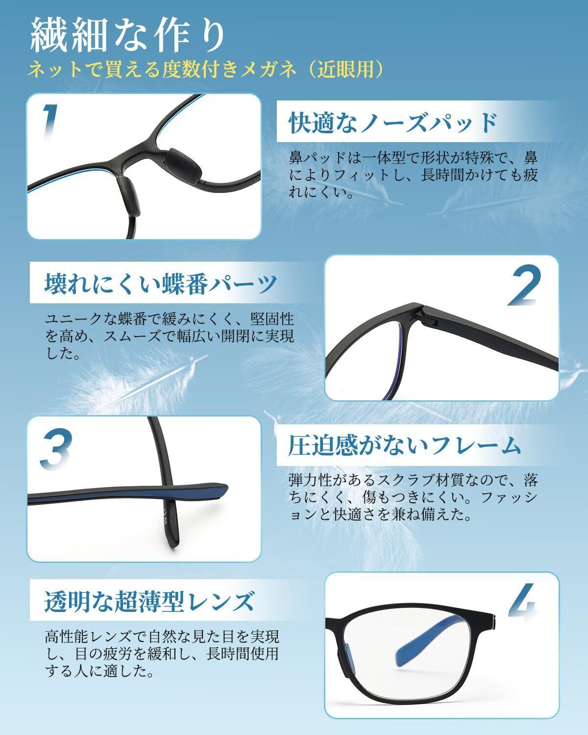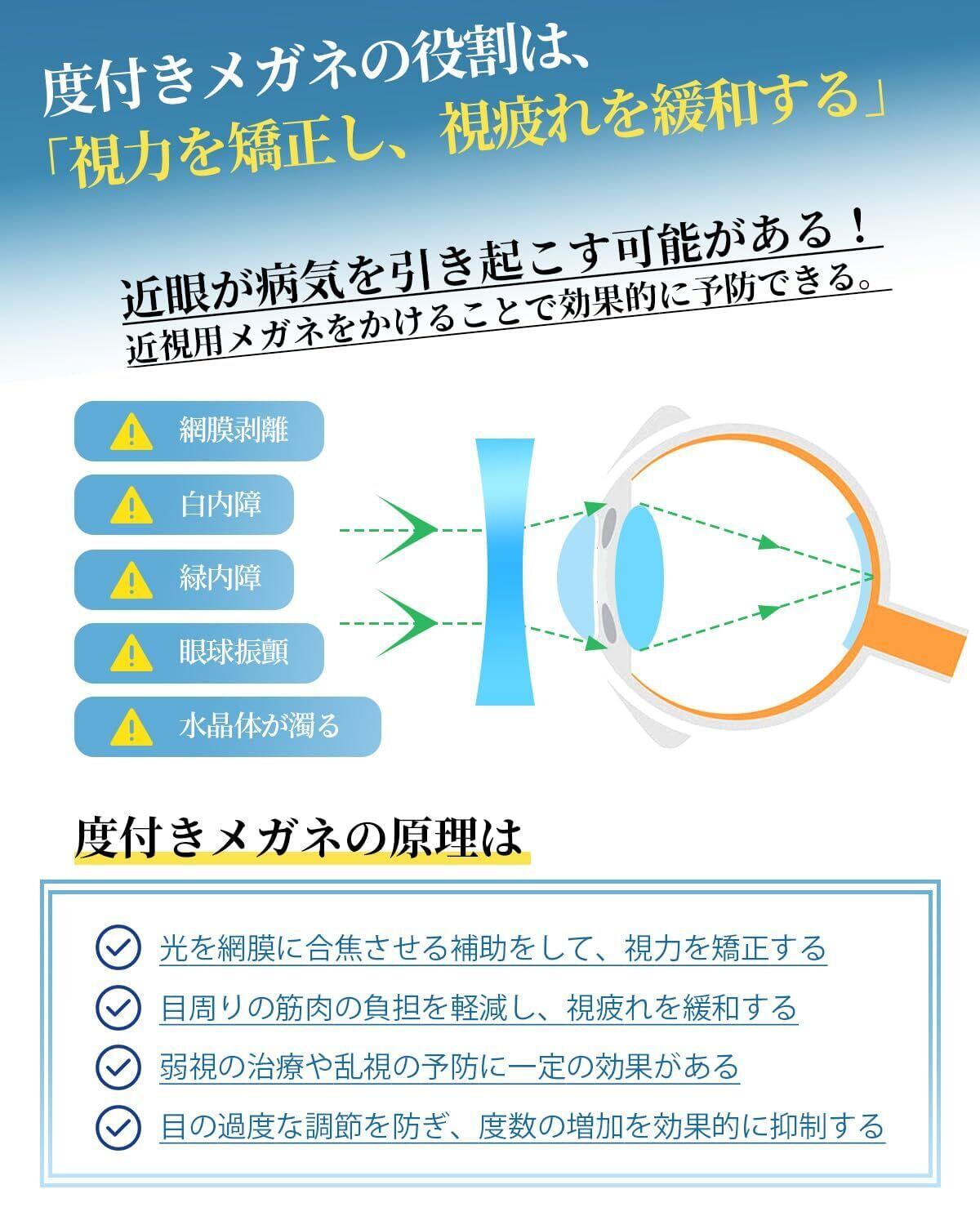 【気軽に使えるお家メガネ】近視用 度あり近眼用メガネです。丈夫な軽量TR90素材を使っていて、メガネの重さはわずか16gで、鼻への圧迫感を和らげます。フレームは弾力性があり、変形しにくく、傷つきにくく、耐久性も強いため、衝撃で曲がったり折れたりする心配がありません。