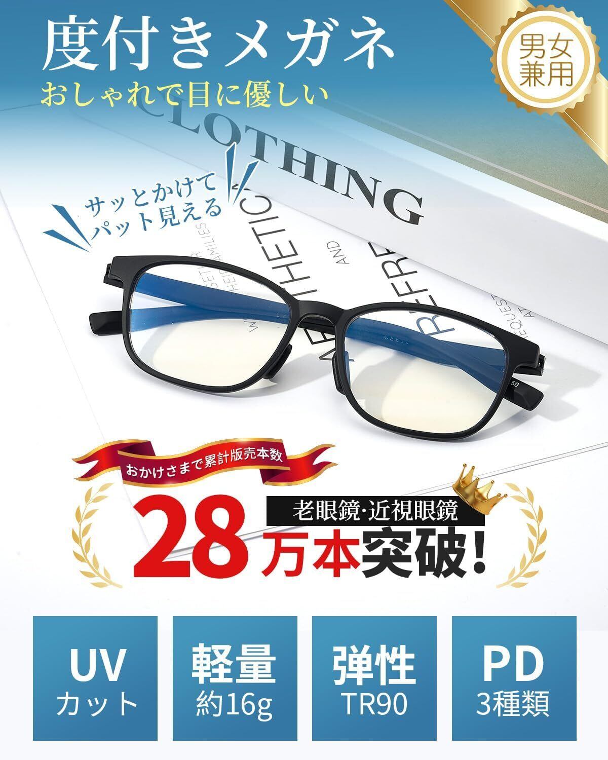 【数量限定】メガネ 度あり 度付き眼鏡 度入り 近視メガネ 近眼 眼鏡 メンズ レディース おしゃれ PC UVカット パソコン用 TR90 弾性フレーム クリア 薄型レンズ 男女兼用 軽量