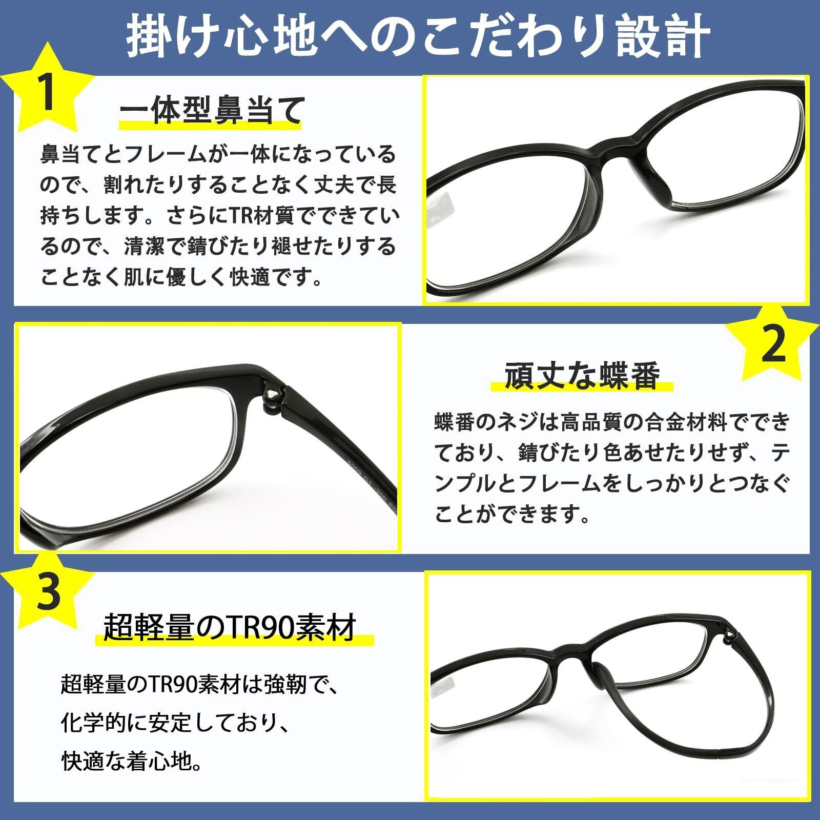 【防ブルーライトの超清樹脂レンズ】当製品のレンズは、最先端の防ブルーライト技術を搭載した超清樹脂製です。現代社会に欠かせないスマートフォンやパソコンなどの電子デバイスから発する有害ブルーライトを有効に遮断し、視界を保護します。長時間のデジタルデバイス使用後の眼疲労や目の乾燥感を軽減し、より健康な視覚体験を提供します。