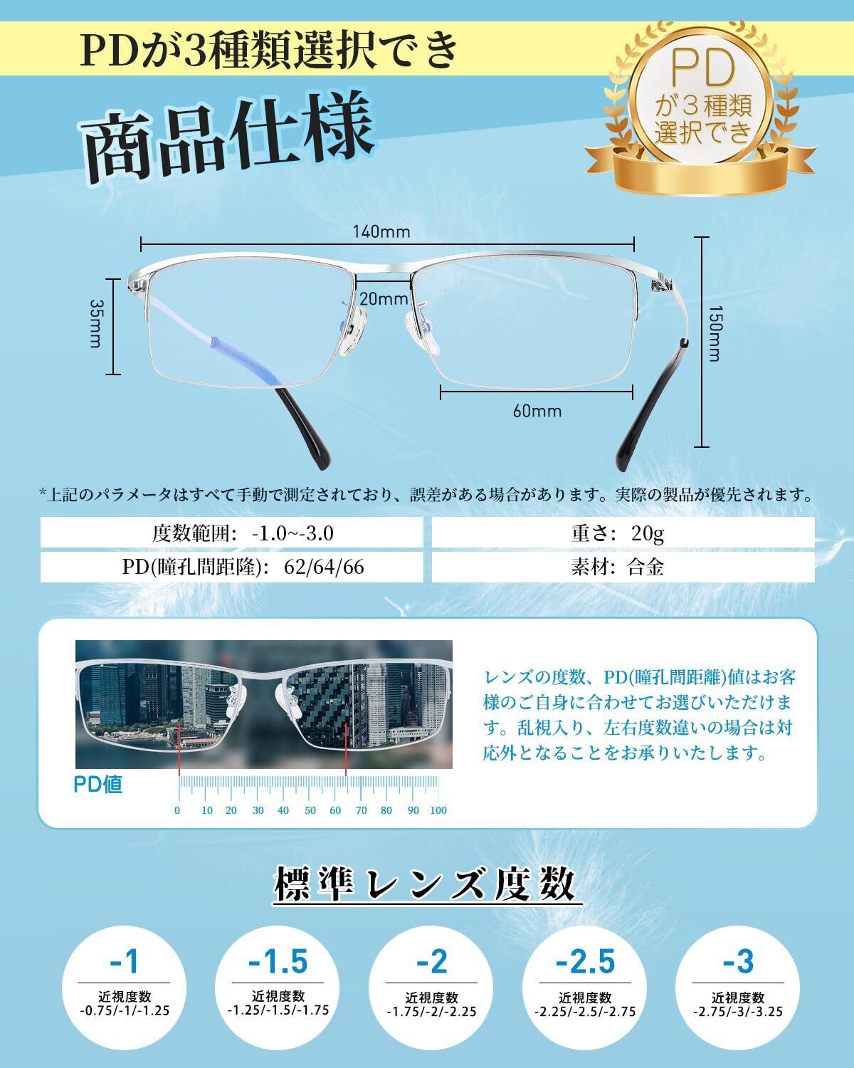 【高級感の超軽量合金フレーム材質近視メガネ】本商品は、アップグレードされた生活スタイルに合わせた高度な近視眼鏡です。シンプルながら高級感満点のフレームです。このデザインは、多様な顔型に合わせ、優雅かつ洗練された印象を与えます。無論、日常の着用に最適で、職場やパーティーでも自信を持ってお着用いただけます。