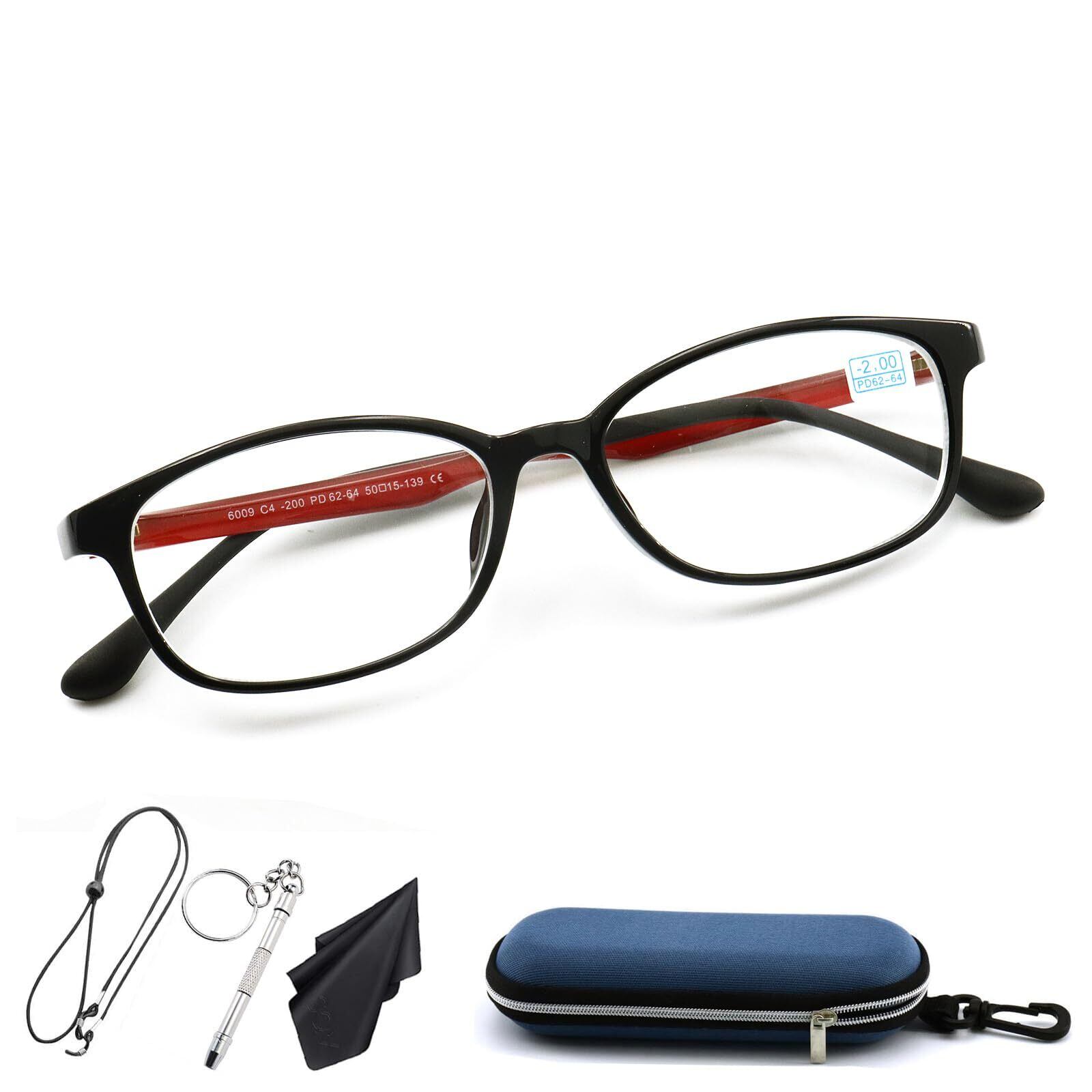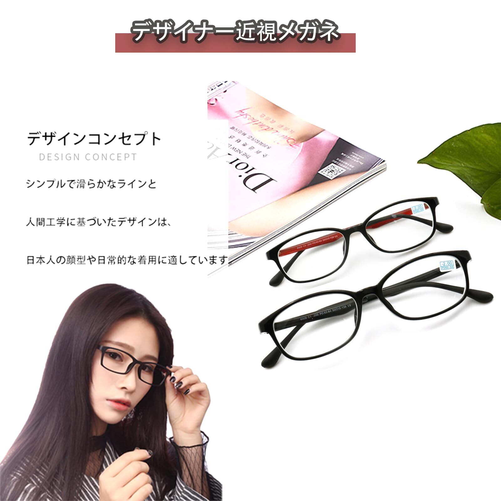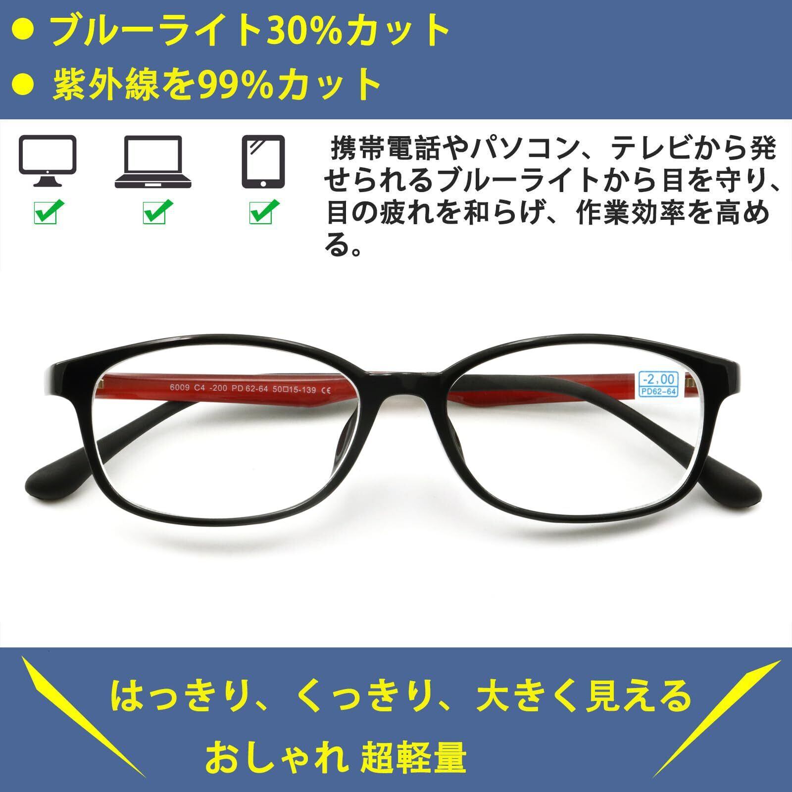 近視メガネ 近眼 超軽量 近視 眼鏡 マイナスレンズ 眼鏡 メガネ近視 度有り 眼鏡度入り メンズ レディース おしゃれ 度付き 度あり カラコン コンタクト 外した後に 6009 (レッド, -3.0, 倍率)