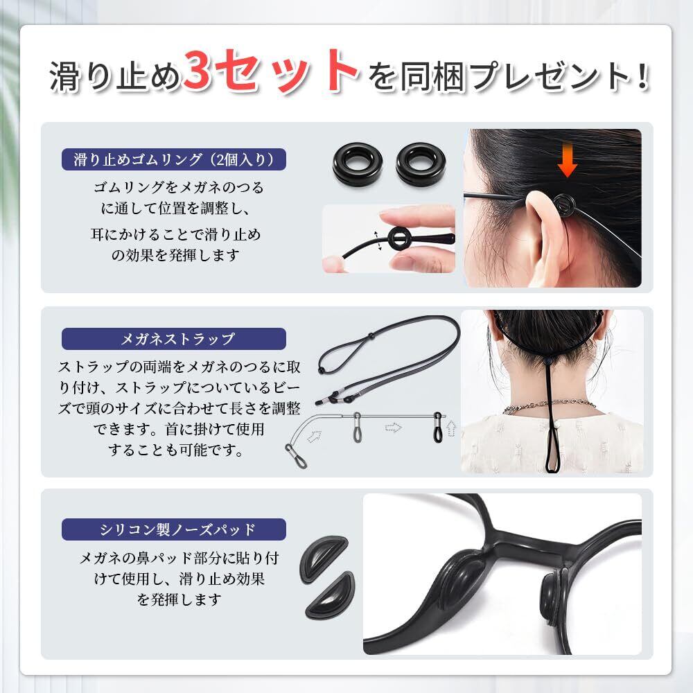 ブルーライトカット機能を搭載:レンズにはブルーライトカット機能が搭載されています。スマートフォンやパソコン、テレビなどから発せられる有害なブルーライトを効果的にカットし、目の疲れを軽減します