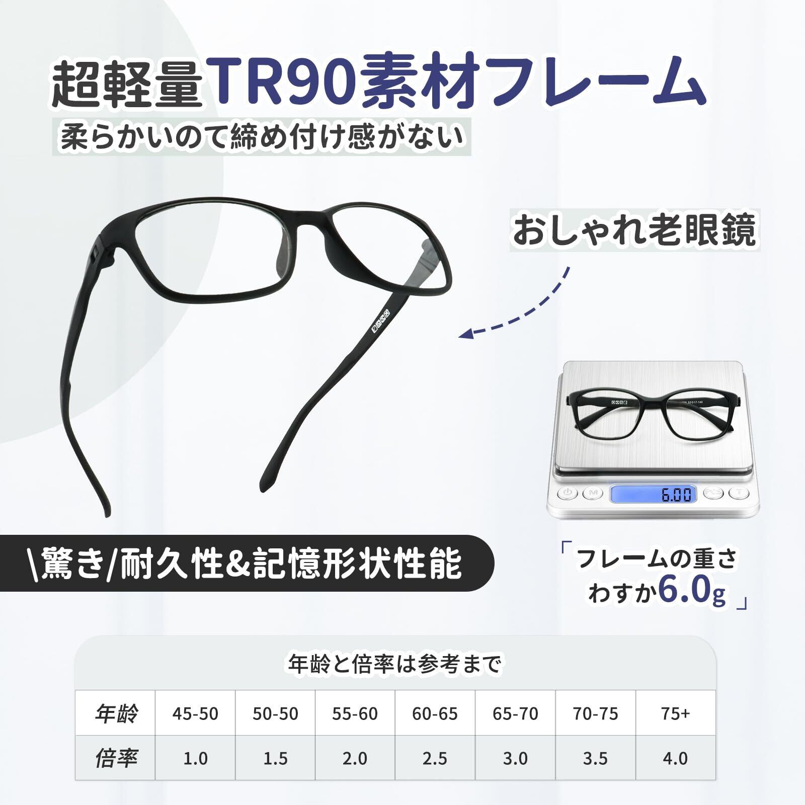 老眼鏡 おしゃれ 1.0/1.5/2.0度選択可 TR90 超軽量 フレーム ウェリントンフレーム老眼鏡 老眼用メガネ レディース メンズ ブルーライトカット リーディンググラス スポーツメガネ