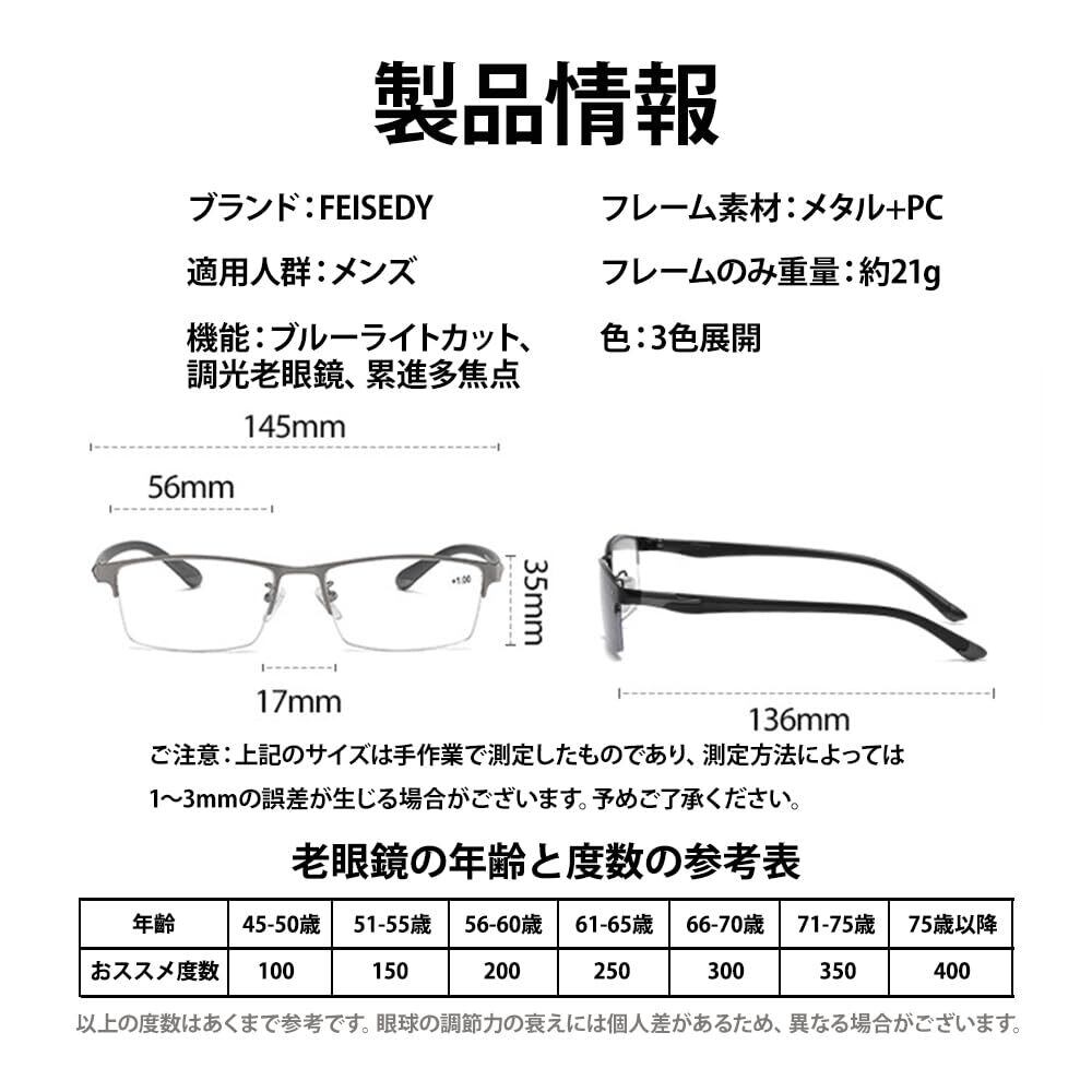 老眼鏡 おしゃれ メンズ 遠近両用 リーディンググラス ブルーライトカット 調光レンズ 累進多焦点 えんきん両用 シニアグラス 超軽量 変色 スクエア B1388